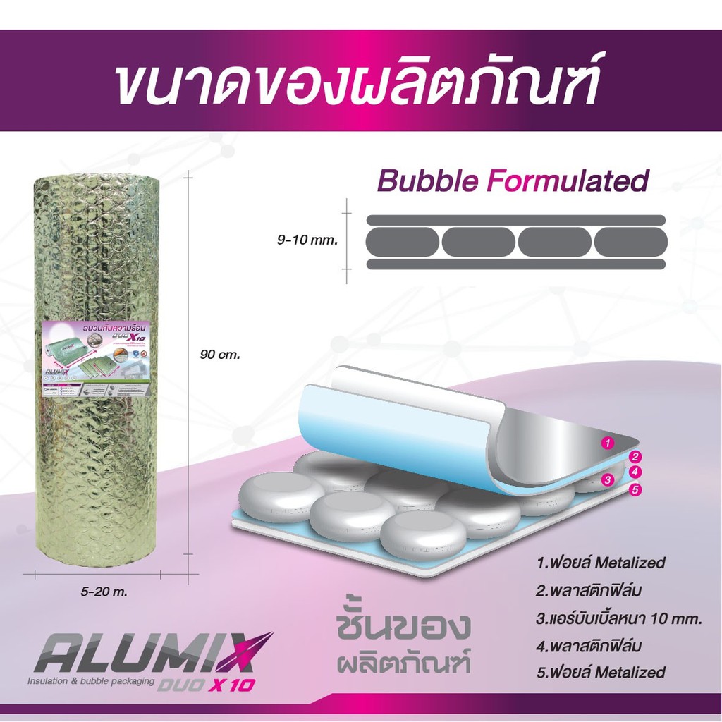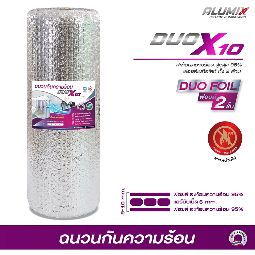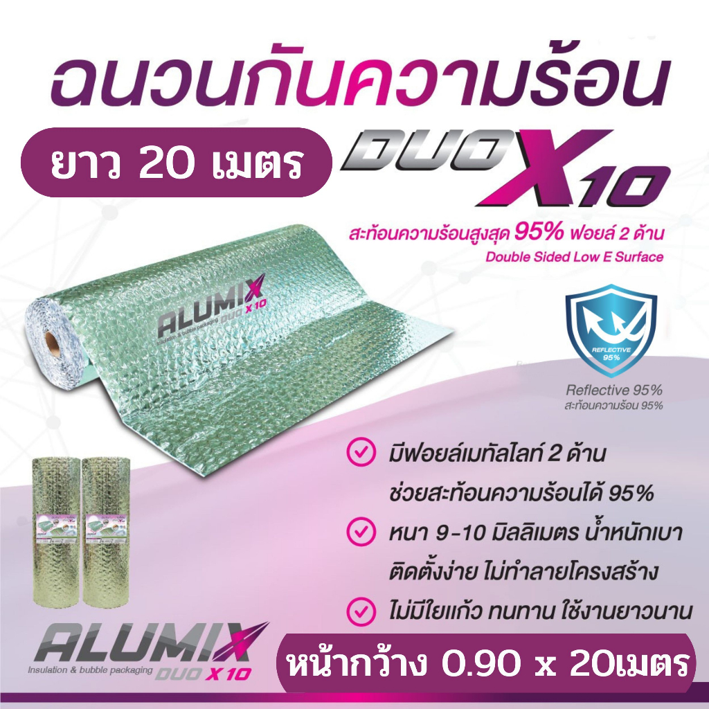 DUO X10 แบบม้วน 20เมตร (DUO-20) ฉนวนกันความร้อน ฟอยล์เมทัลไลท์สะท้อนความร้อน 2 ด้าน 90cm x 20mส่งฟรี