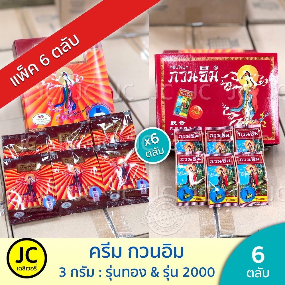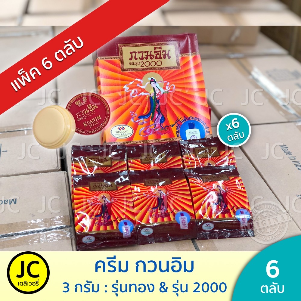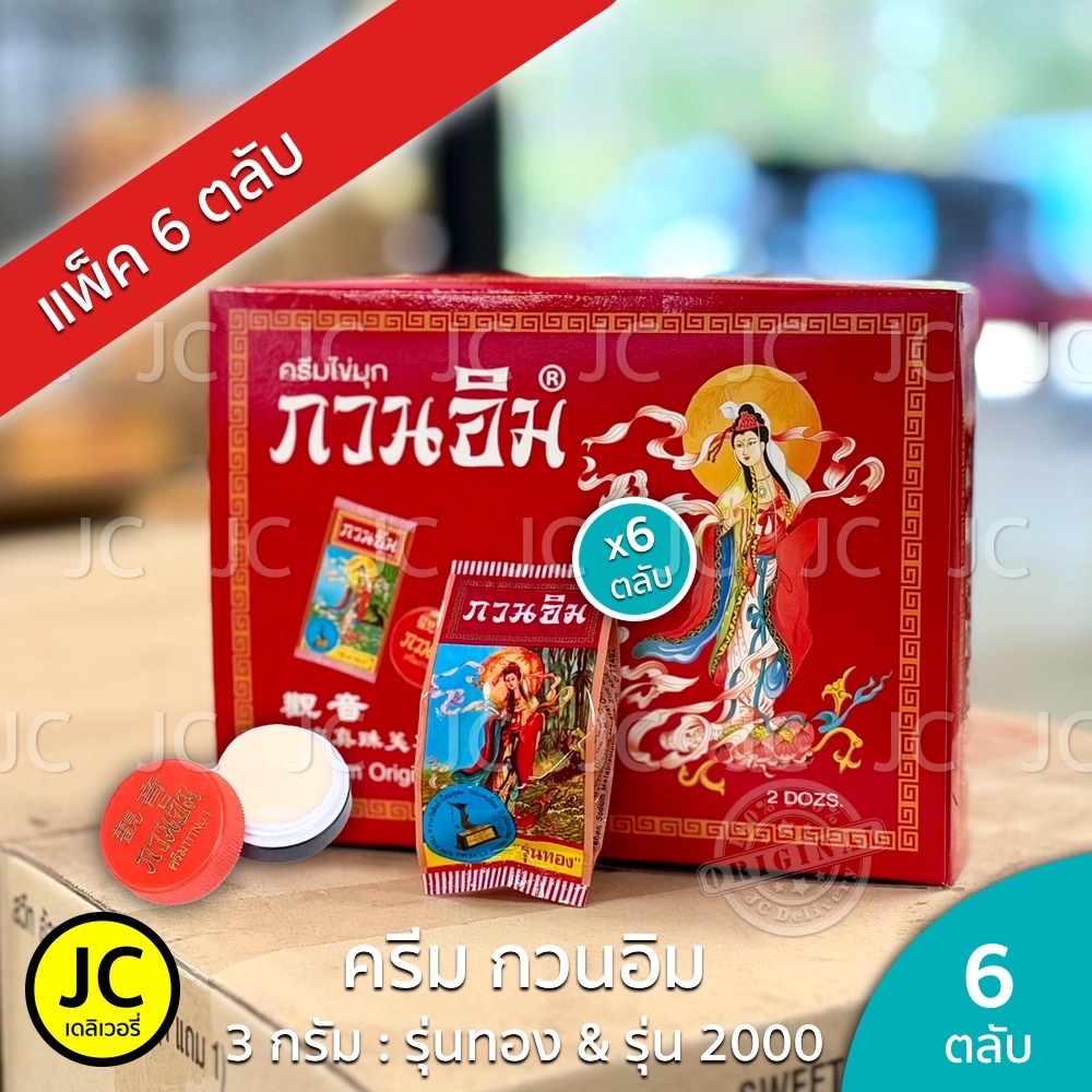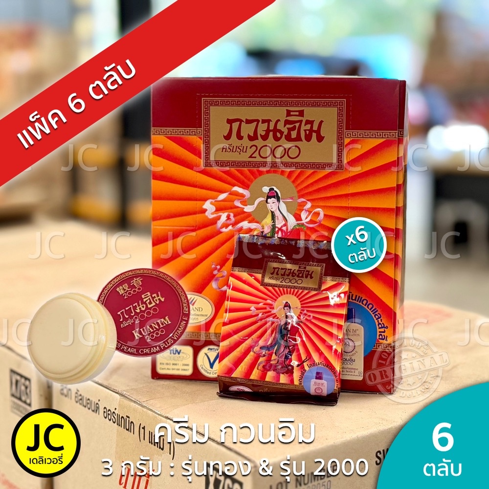 (แพ็ค 6 ตลับ) ครีม กวนอิม รุ่นทอง & รุ่น 2000 ขนาด 3 กรัม ครีมไข่มุก Kuan Im แก้สิว ฝ้า จุดด่างดำ