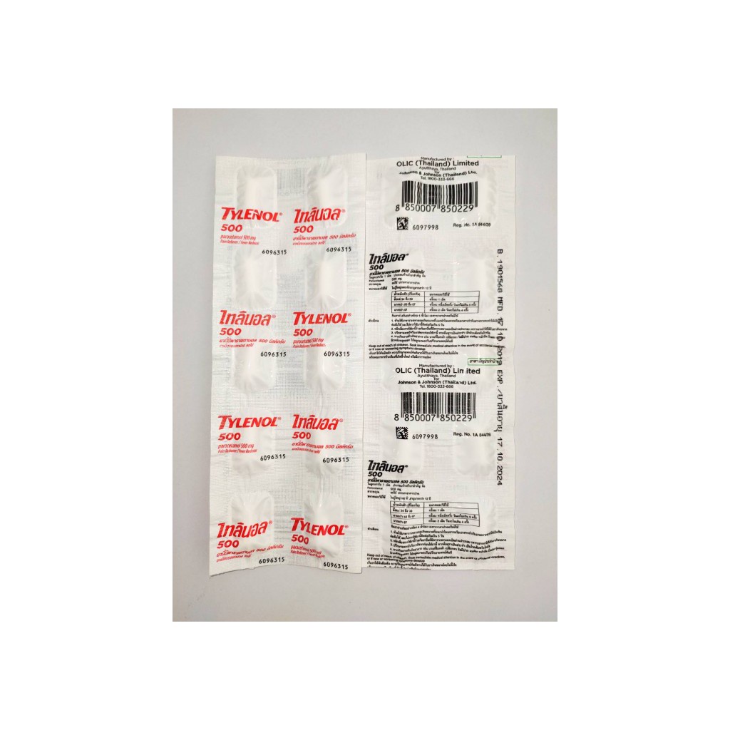 TYLENOL 500 mg. ไทลินอล 500 พาราเซตามอล 10 เม็ด 1 แผง