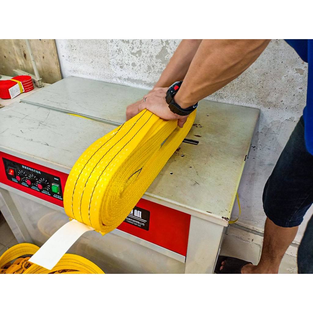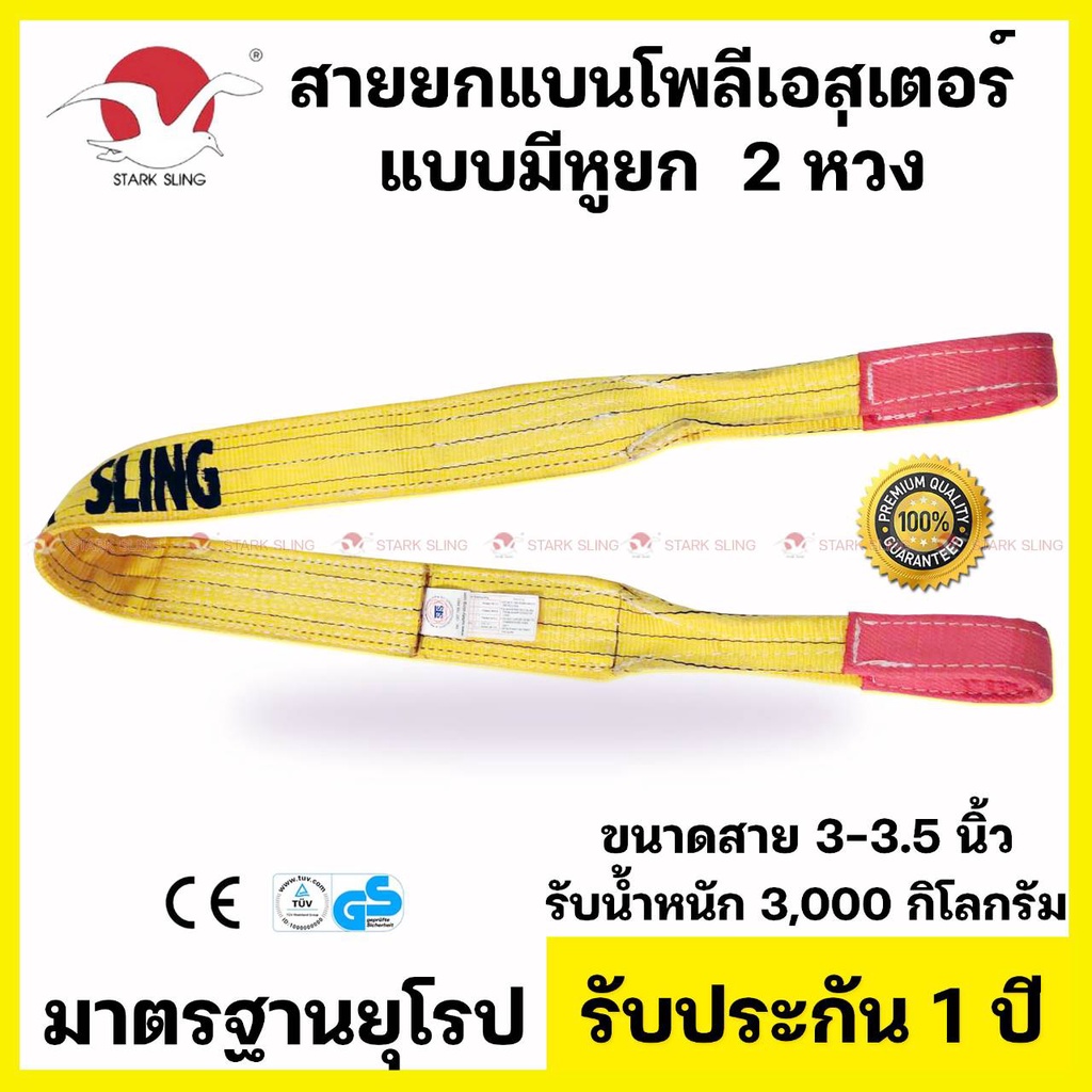 สายยกของ สายยกแบน สลิงแบนโพลีเอสเตอร์ กว้าง 3 นิ้ว ชนิดมีห่วงหัวท้าย รับน้ำหนัก 3 ตัน สายยกแบน สายรัดของ