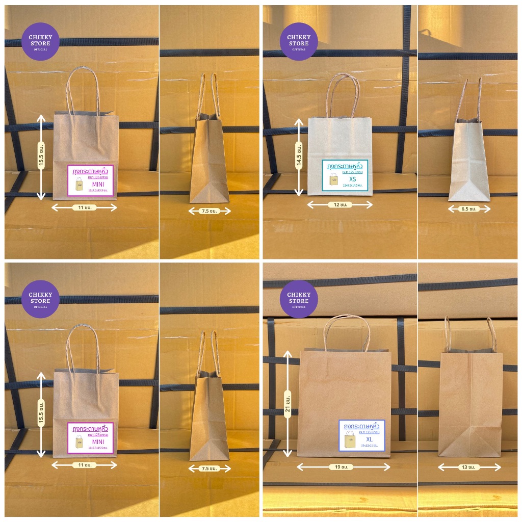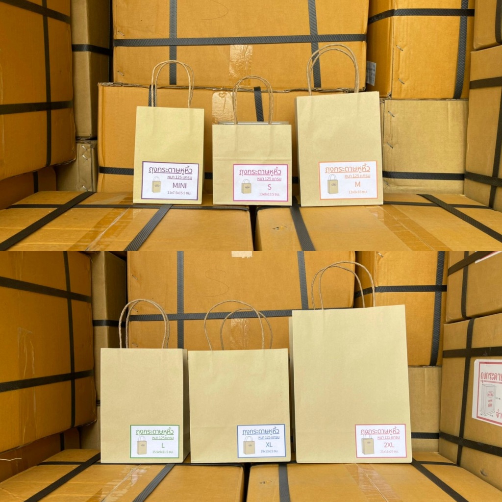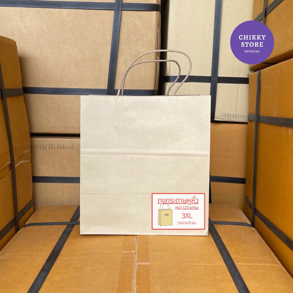 [✅ส่งฟรี] ถุงกระดาษหูเกลียว ถุงกระดาษหูหิ้ว สีน้ำตาลล้วน (เริ่มต้น 1 ใบ)
