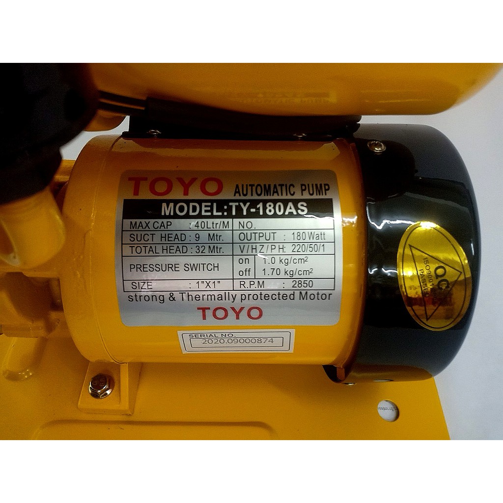 TOYO ปั๊มน้ำออโต้ 1 นิ้ว 180w. ขดลวดทองแดงแท้ ใบพัดทองเหลือง ฝาปิดทองเหลือง รับประกัน 1 ปี TY-180S