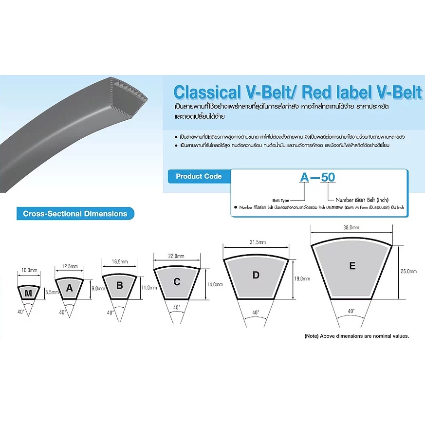 MITSUBOSHI สายพานร่องบี สายพานร่องB ขนาด B46 - B55