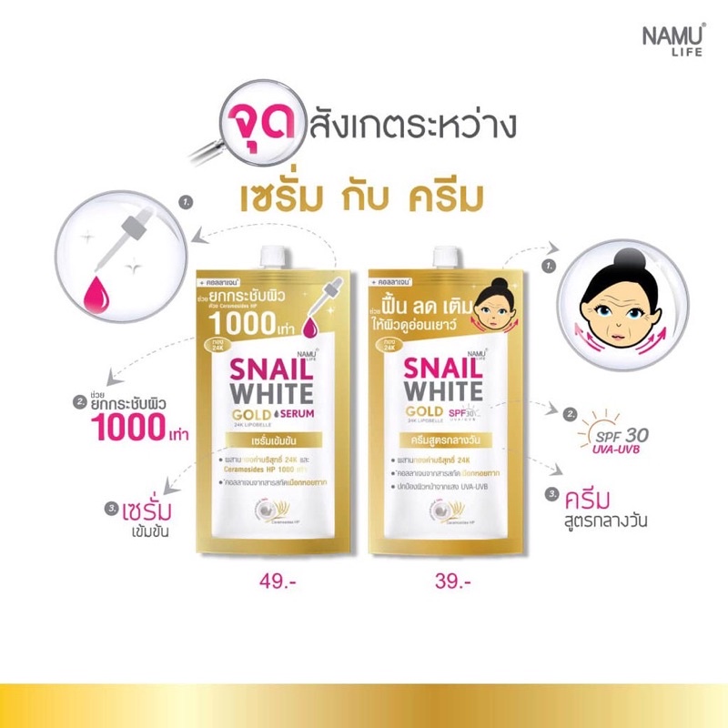 {1ซอง} Namu Life Snail White Gold SPF30/PA+++ : นามุ ไลฟ์ สเนลไวท์ โกลด์ เอสพีเอฟ30/พีเอ+++