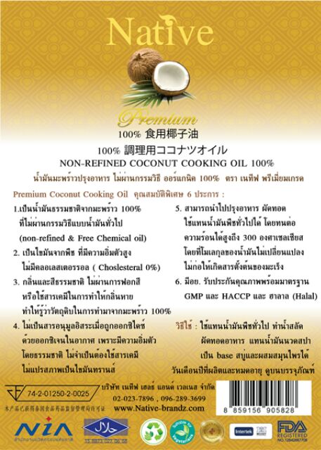 [แท้ 100% ไร้กลิ่น ไม่ผสม] เนทีฟ น้ำมันมะพร้าวสกัดร้อน 5 ลิตร น้ำมันมะพร้าว non-refined coconut oil