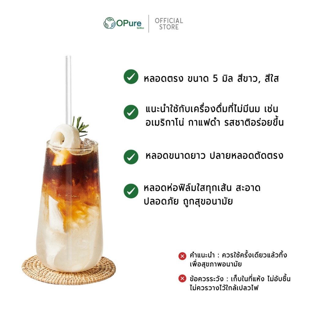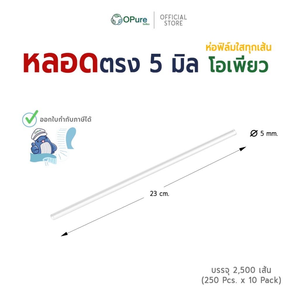 (2,500 เส้น/ลัง) หลอดตรง 5 มิล ยาว 23 ซม. *ห่อฟิล์มใส หลอดพลาสติก OPure สำหรับเมนูเย็น (ขายยกลัง)