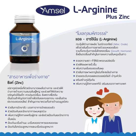 ซื้อ2สุดคุ้ม Amsel L-Arginine Plus Zinc แอมเซล แอล-อาร์จินีน พลัส ซิงค์ บำรุงสุขภาพเพศชาย (40 แคปซูล)