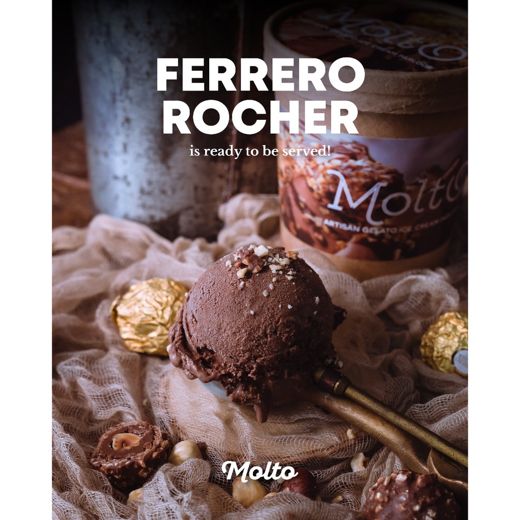 Molto ไอศกรีม เฟอร์เรโร รอชเชอร์ 16 ออนซ์ - Molto Premium Gelato - Ice cream Ferrero Rocher 16 oz.‼️4ถ้วย ส่งฟรี‼️