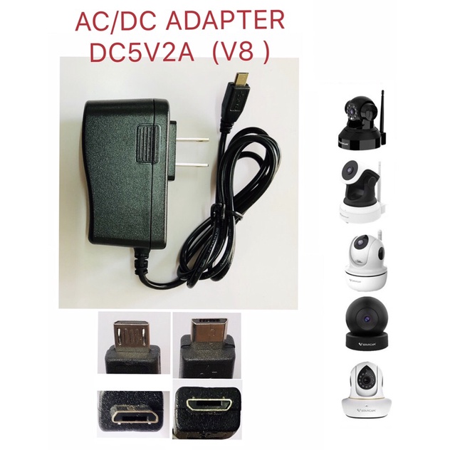 DC อะแดปเตอร์สำหรับกล้องวงจรปิด IPcamra กล้องภายใน Adapter 5V2A (V8)