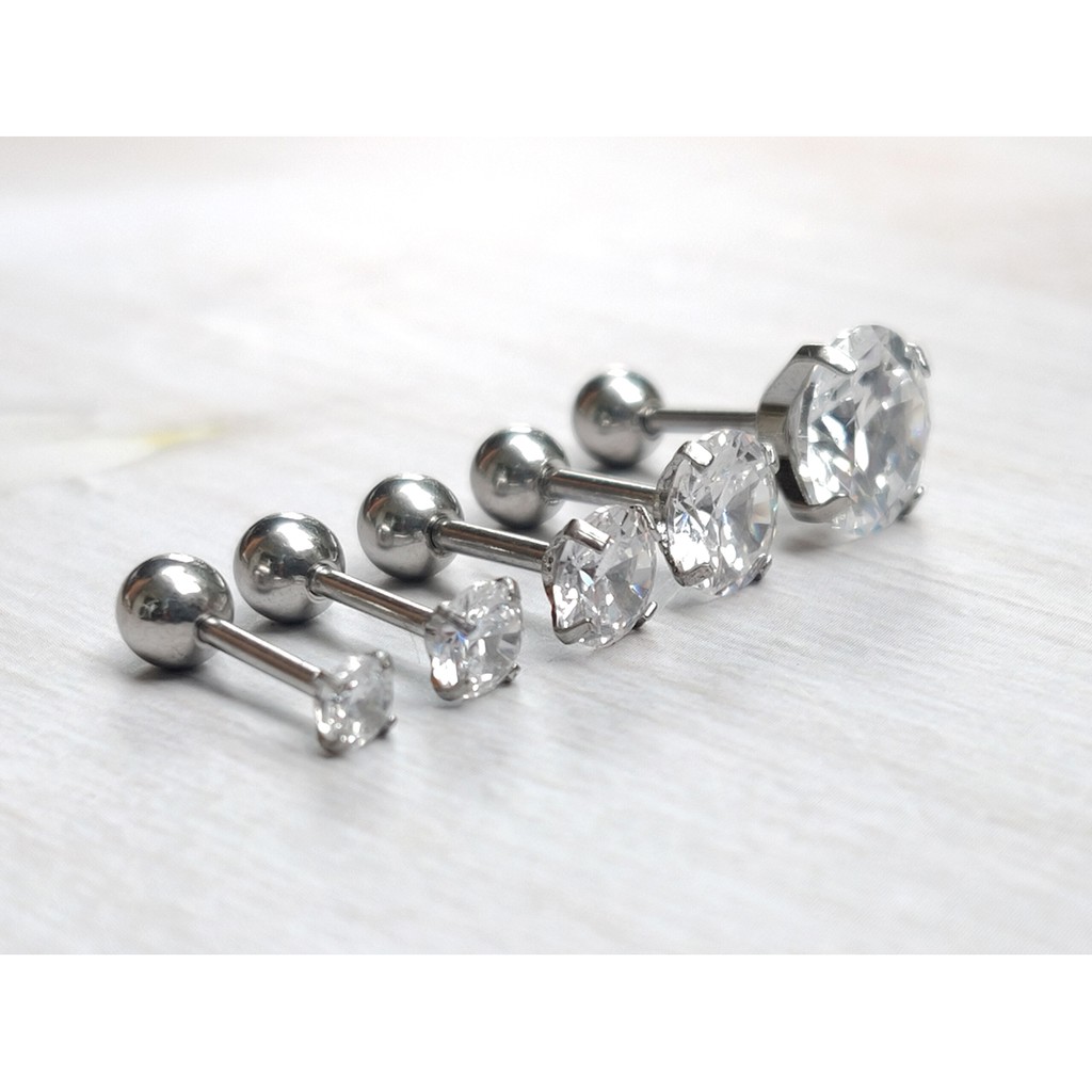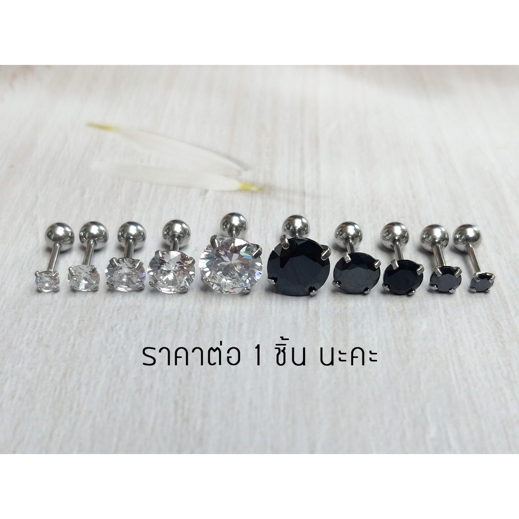 ⚡จิวหูสแตนเลสแท้ 316L ประดับเพชร CZ จิวหูเพชร⚡SS.CZ⚡ Stud Earring Real Stainless Steel Jewelry for Men Women - 1 Piece