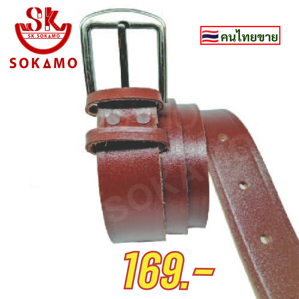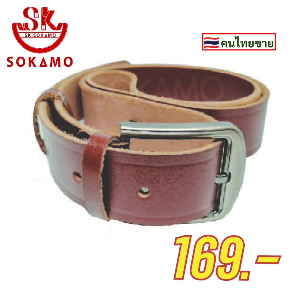 เข็มขัดหนังแท้ๆ หนาชั้นเดียว สีน้ำตาล กว้าง 3.7 CM. SOKAMO