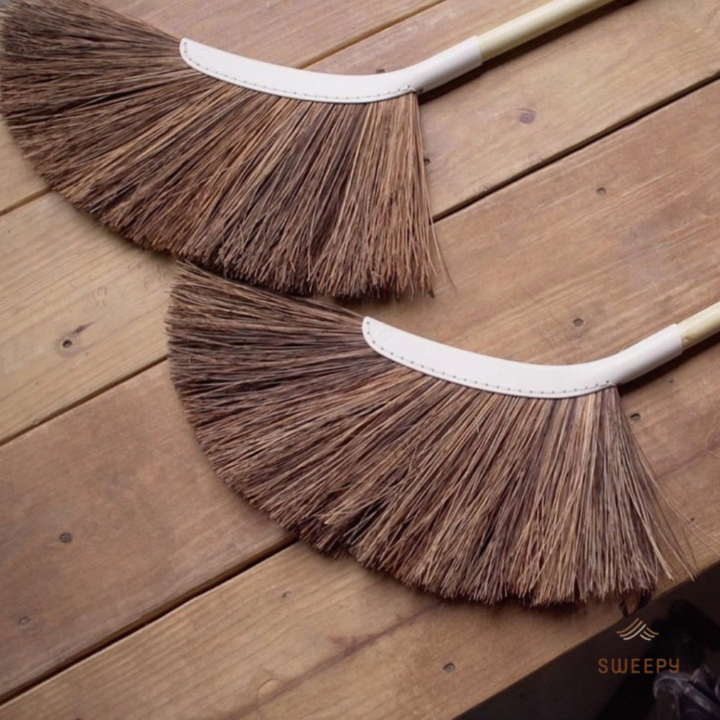 Sweepy ไม้กวาดเสี้ยนตาล ธรรมชาติ สำหรับกวาดภายนอกบ้าน และอาคาร เคลือบวัสดุกันน้ำ ใช้งานได้ไม่ว่าพื้นเปียก