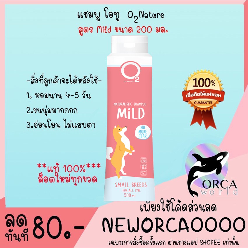 O2 Shampoo แชมพู สุนัข สูตร Mild 200 ml โอทูแชมพูสำหรับสุนัขผิวบอบบาง ผิวแพ้ง่าย ขนนุ่ม กลิ่นหอม