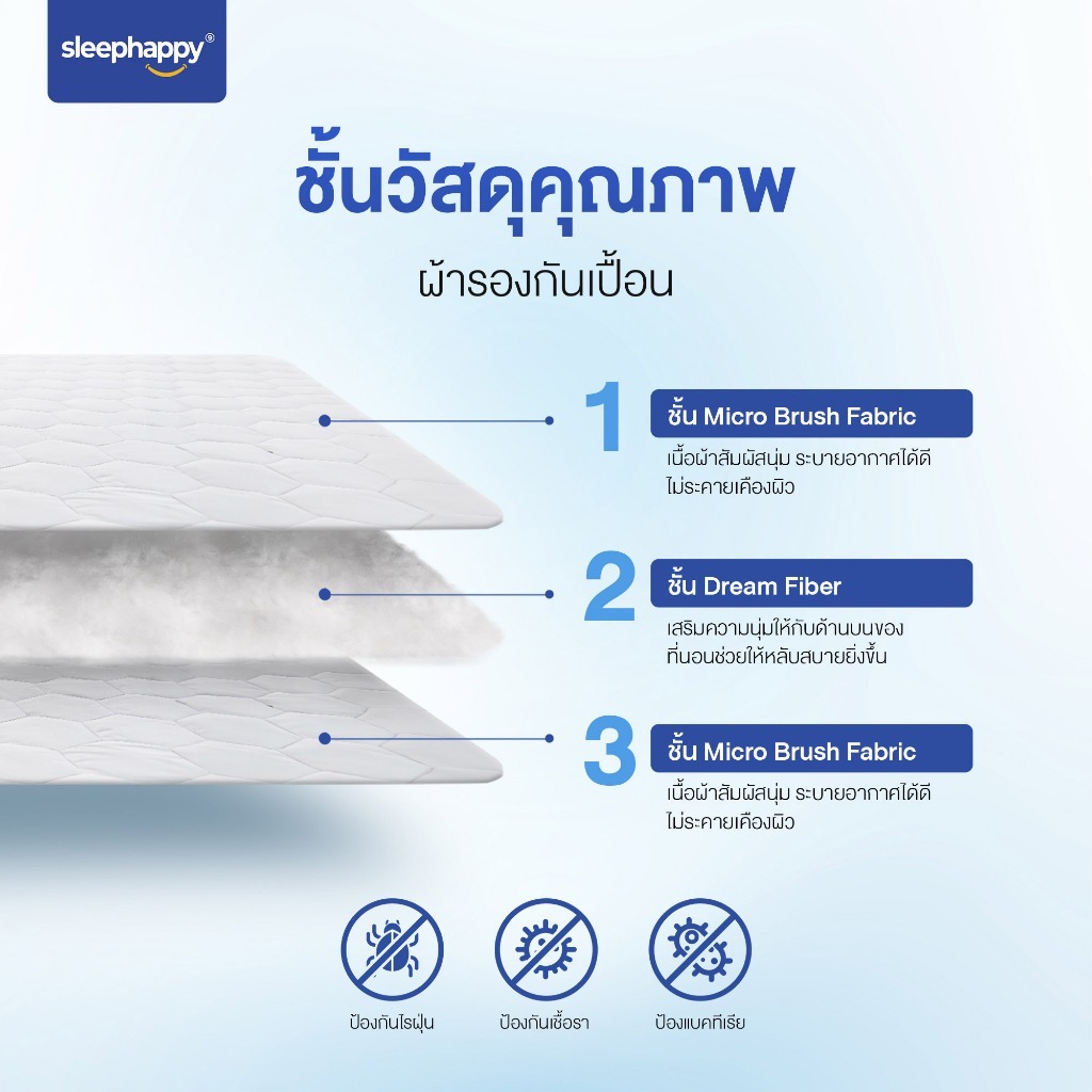 SleepHappy Microbrush Protector ผ้ารองกันเปื้อน ผ้ารองที่นอน กันไรฝุ่นและแบคทีเรีย ทนทาน 100% มียางรัดมุม 4 ด้าน