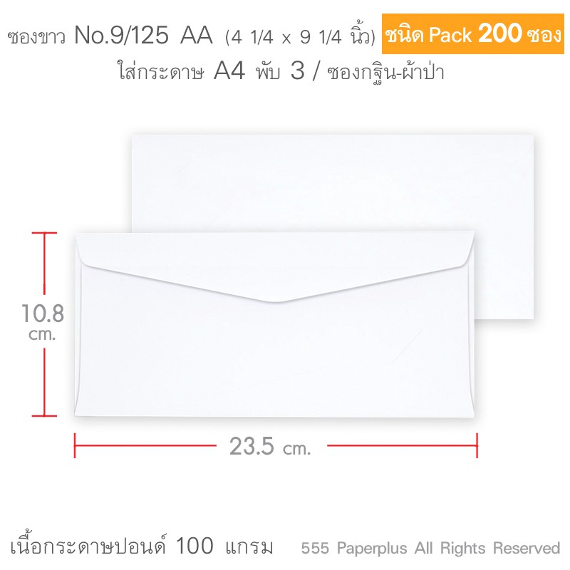 555paperplus ซองขาวยาว No.9 (แพ็ค 200ซอง) มีฝา 2ชนิด ดูแบบที่รายละเอียดค่ะ