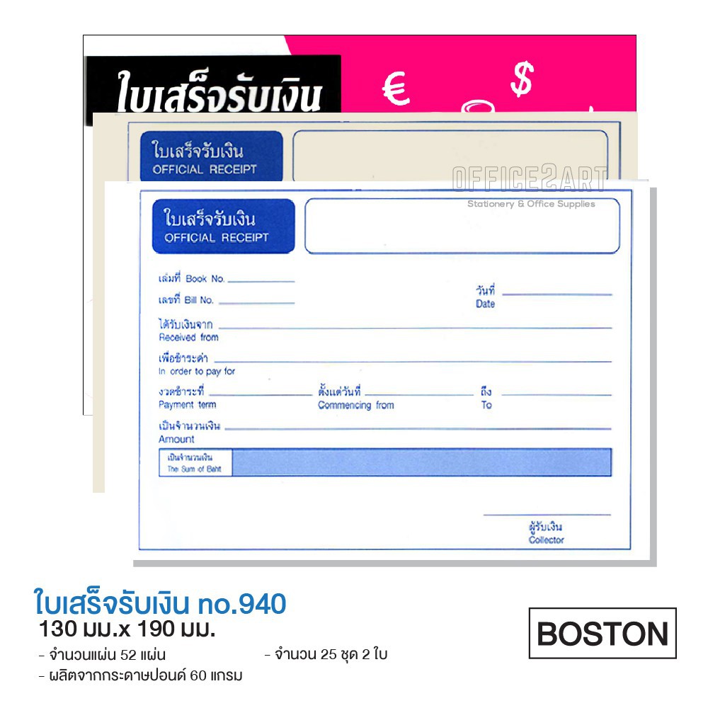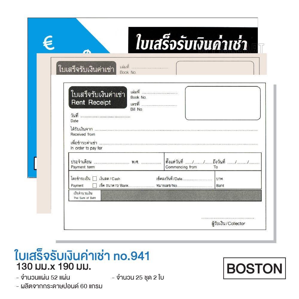 ใบเสร็จรับเงิน / ใบเสร็จรับเงินค่าเช่า บอสตัน บรรจุ 50 แผ่น (1 เล่ม) Boston