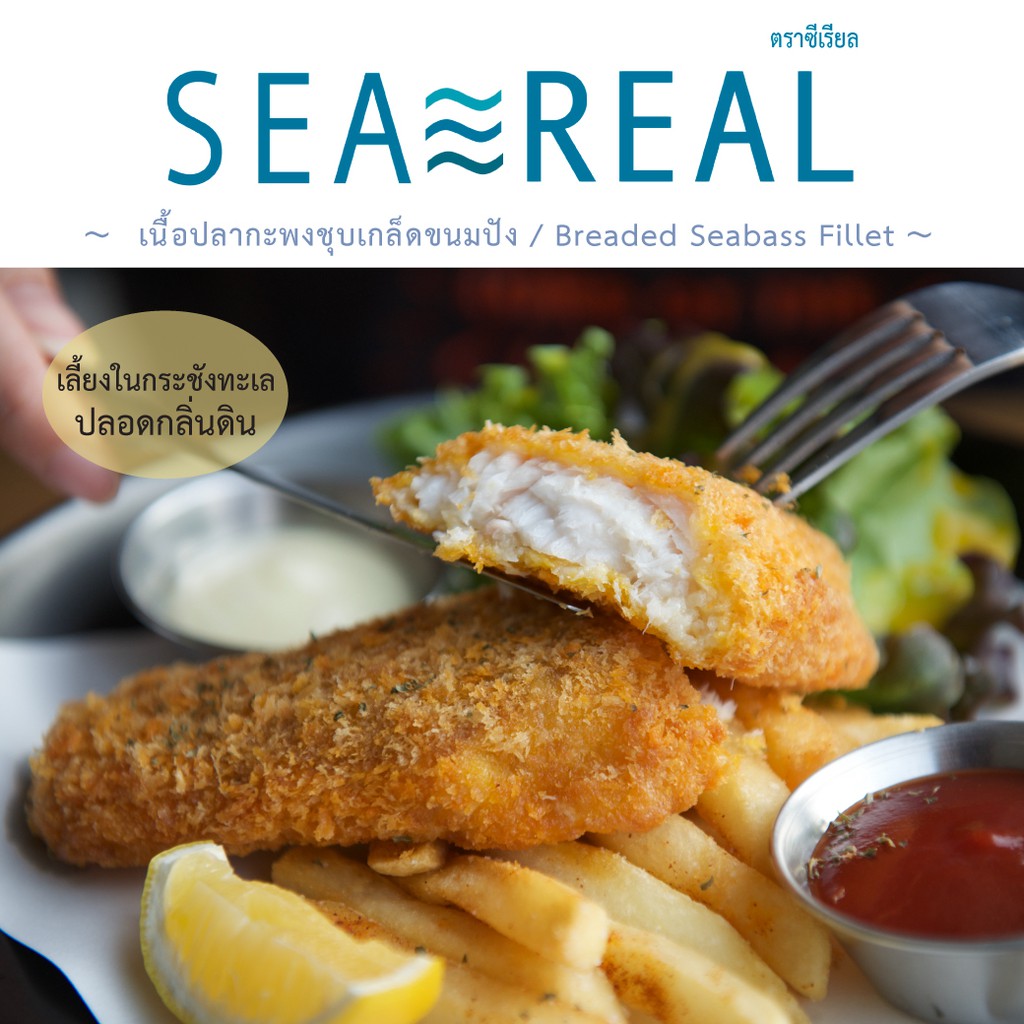 Seareal เนื้อปลากะพงชุบเกล็ดขนมปัง 625-700 กรัม พร้อมซอสทาร์ทาร์ Breaded Seabass 625-700g