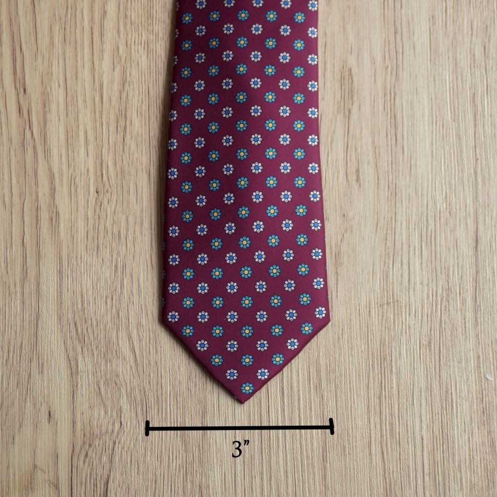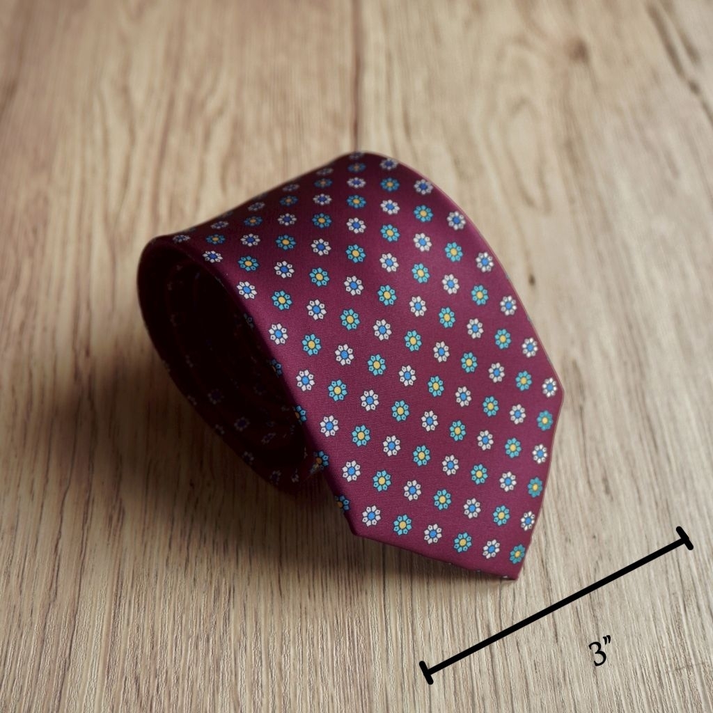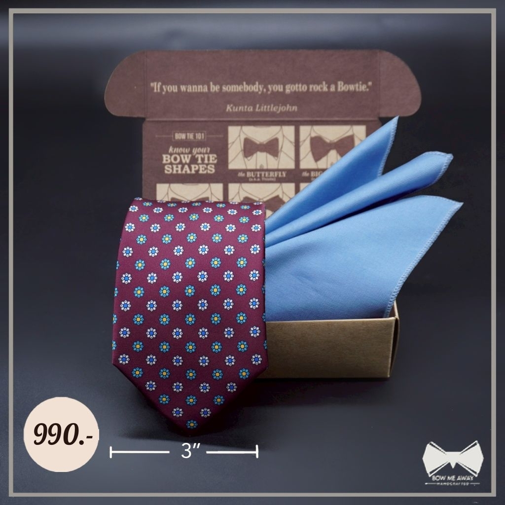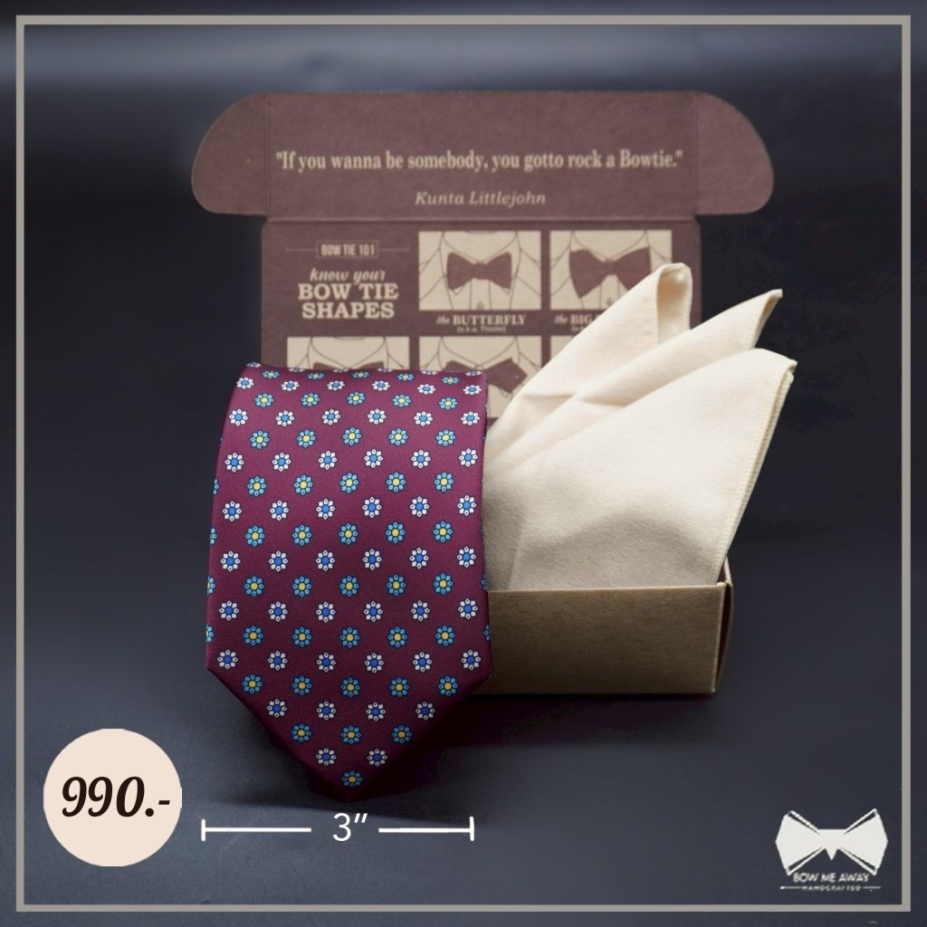 เซ็ทเนคไทเบอร์กันดีลายFloralไมโครแพทเทิร์น+ ผ้าเช็ดหน้าสูท