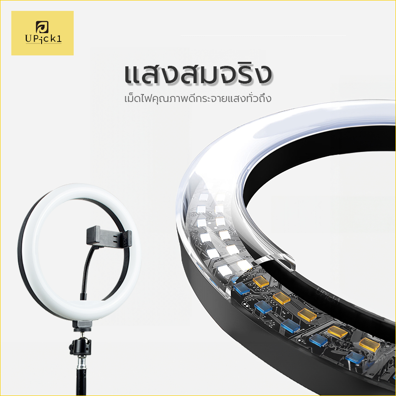 UPick1 ชุดไฟไลฟ์สด LED Ring Light 26-30cm พร้อมขาตั้ง2.1m(A)+ที่จับมือถือ สำหรับเพิ่มความสว่าง