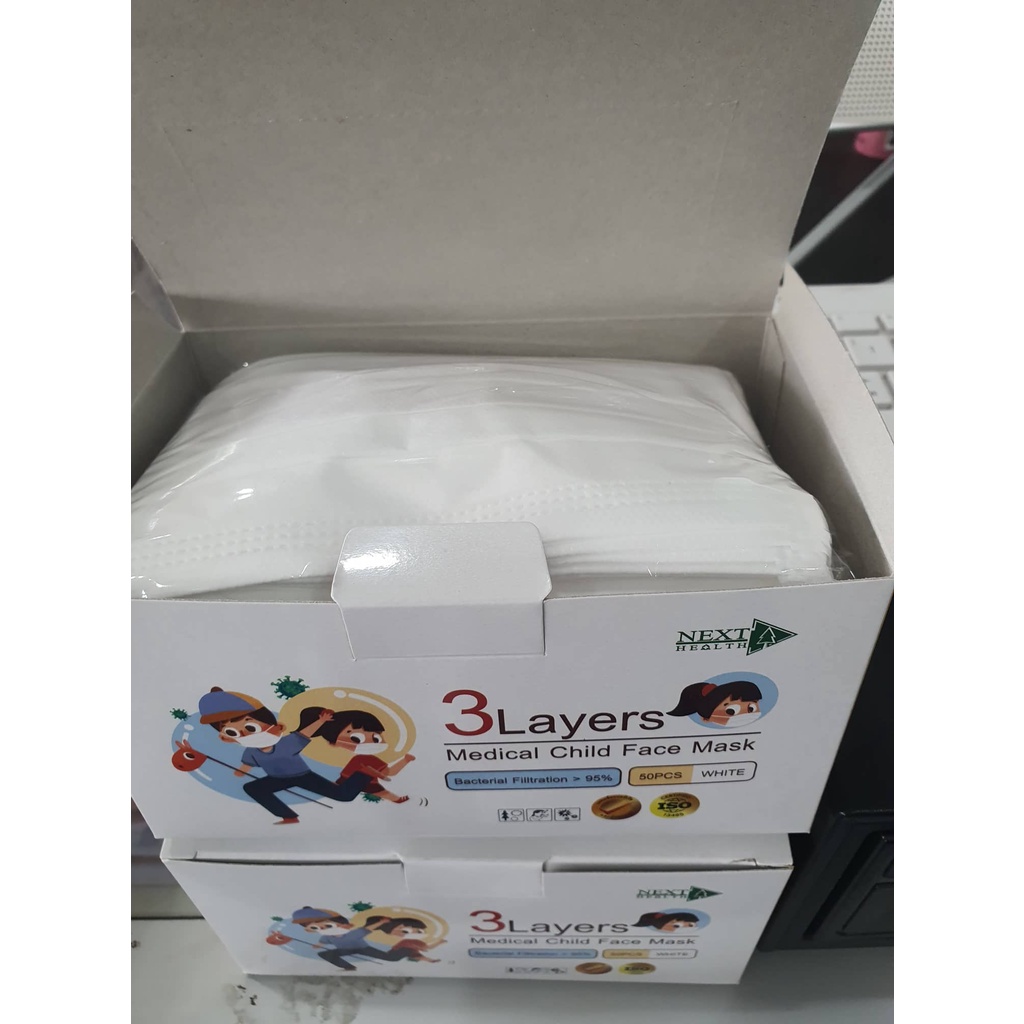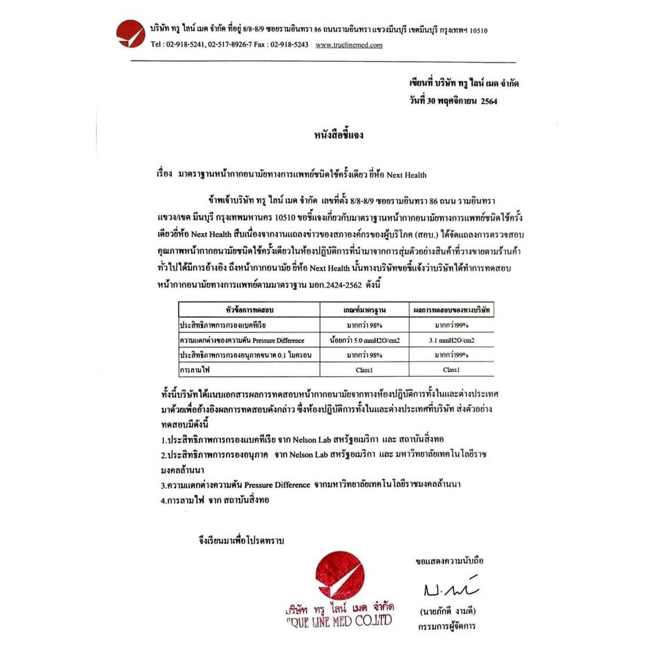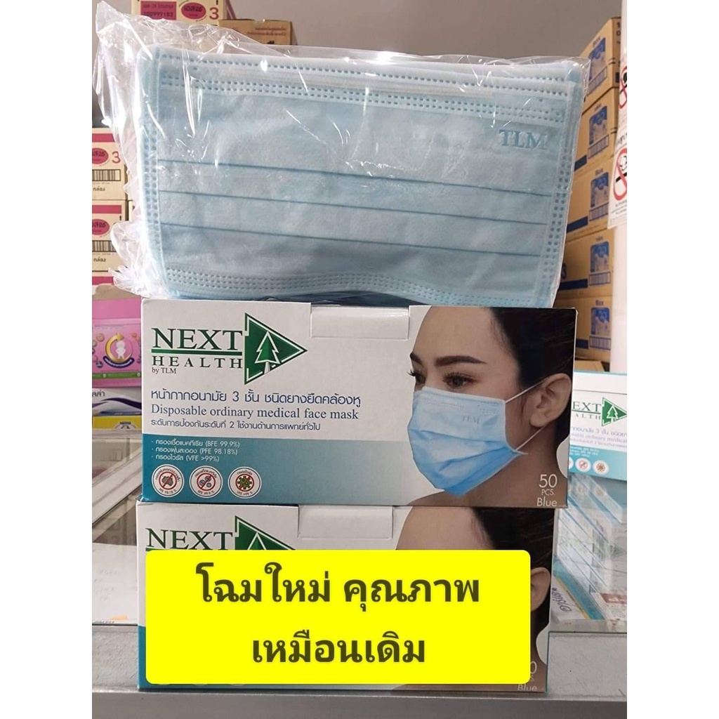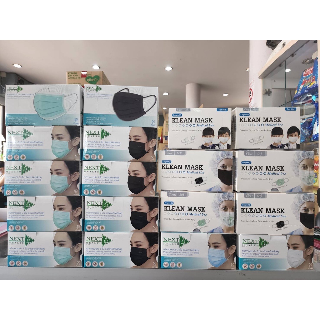แมส 3 ชั้น ( หน้ากาก อนามัย เกรด ทางการแพทย์ ) งาน ไทย บริษัททรูไลน์เมด klean ผู้ใหญ่ TLM NEXT HEALTH กล่องละ 50 ชิ้น
