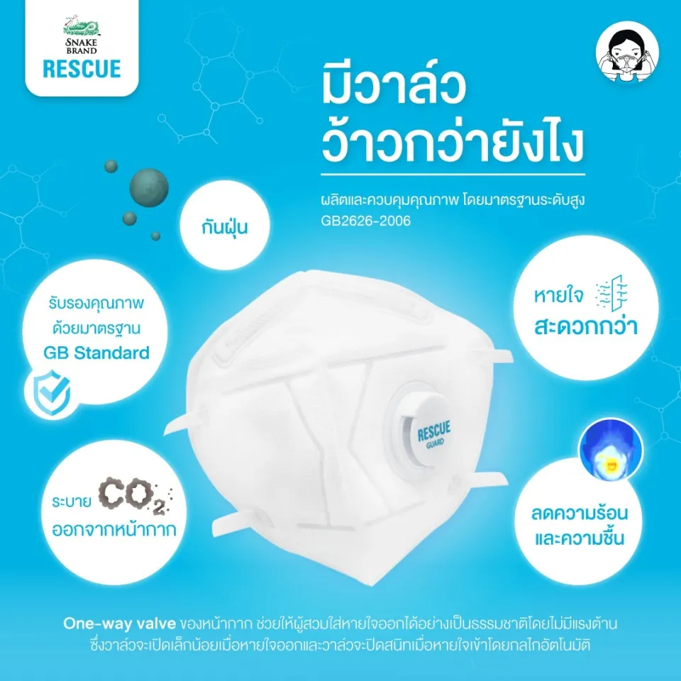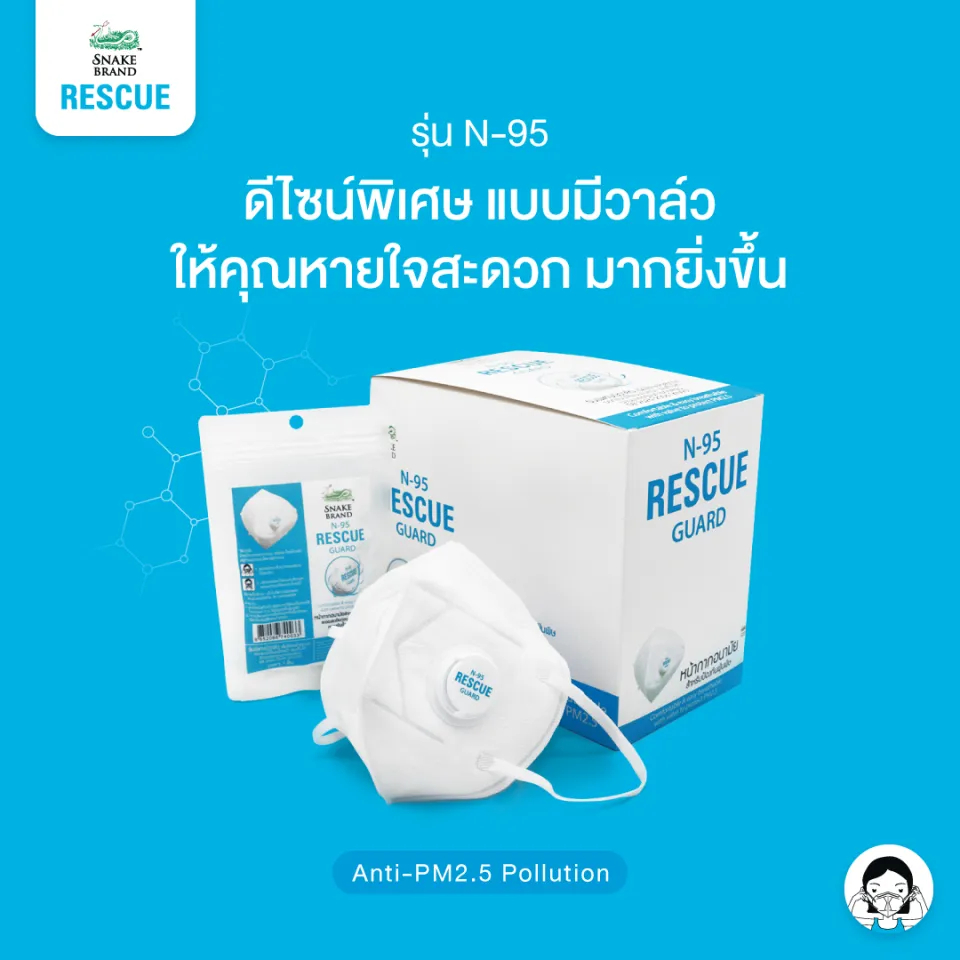(ยกกล่อง) Snake Brand Rescue Guard N95 หน้ากาก N95 ตรางู รุ่นมีวาล์ว / ไม่มีวาล์ว