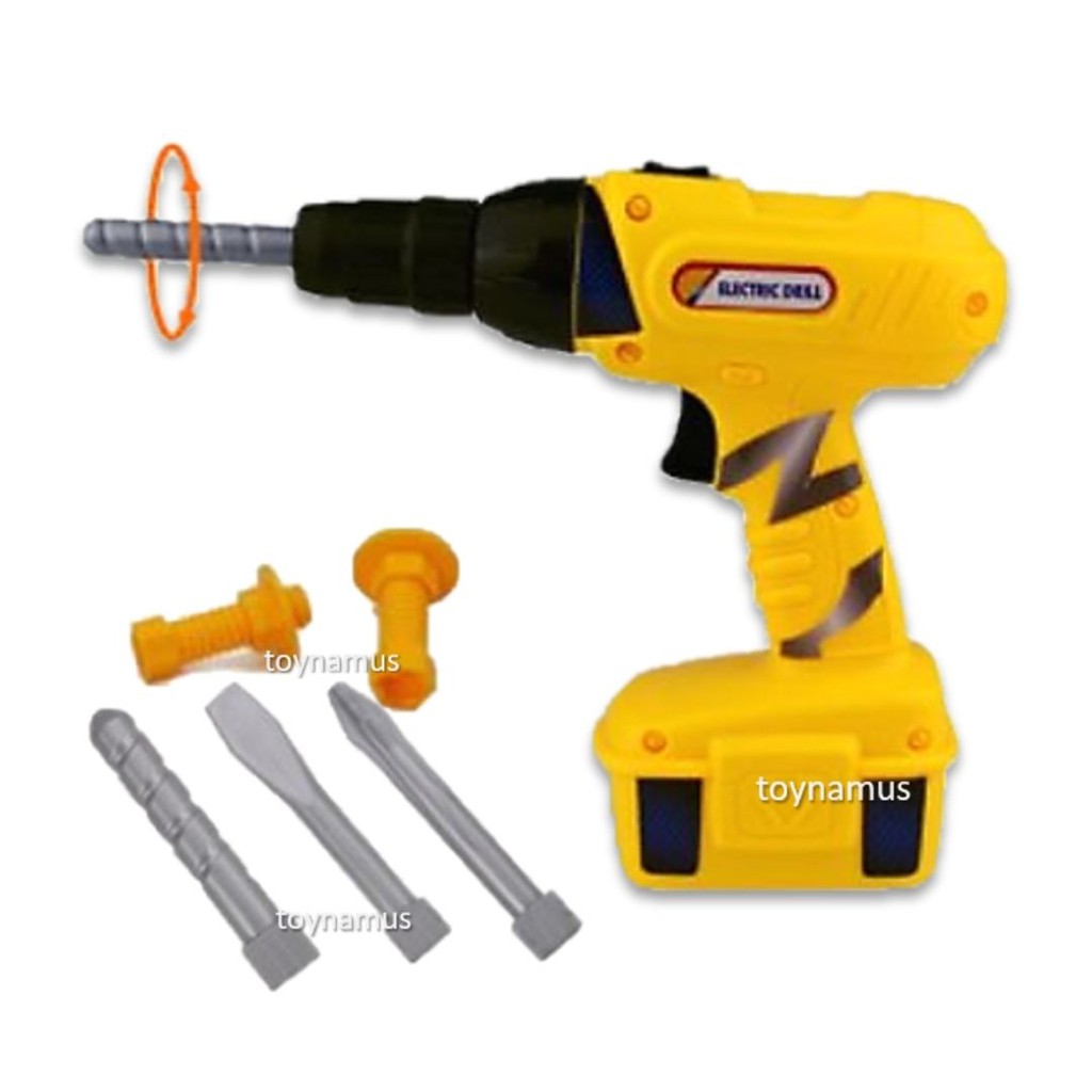 ของเล่นสว่านไฟฟ้าหมุนได้จริง Construction Toy Electric Drill Tool Set ใส่ถ่านหมุนได้