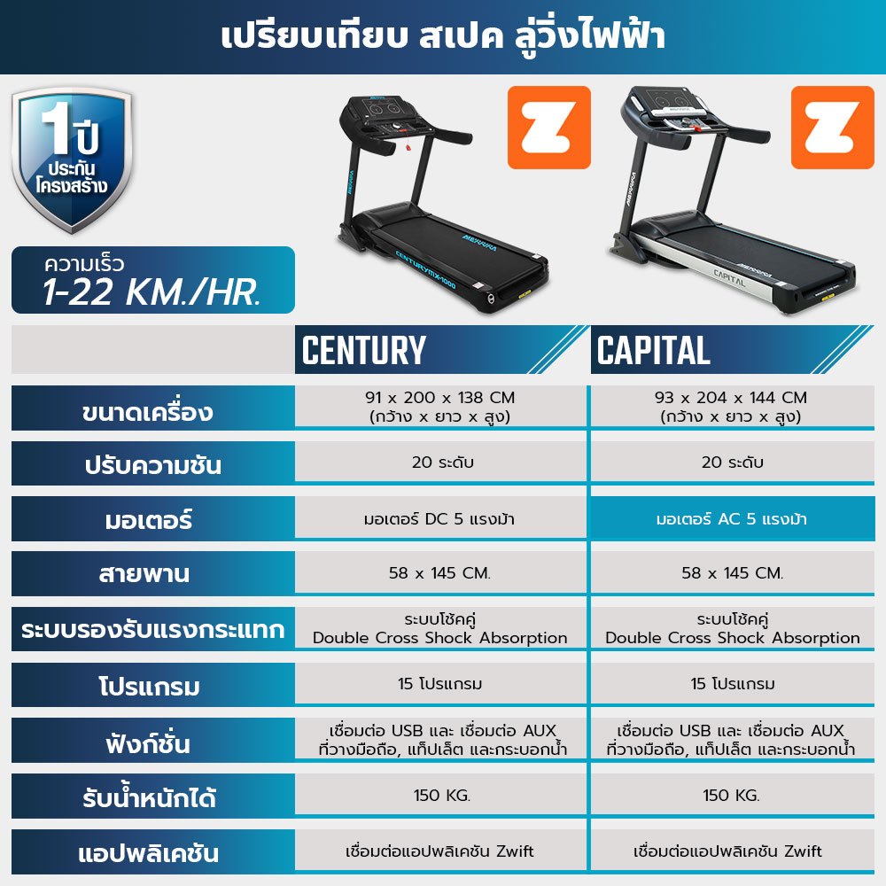 MERRIRA ลู่วิ่งไฟฟ้า มอเตอร์ AC เกรดฟิตเนส 5 HP MX-2000 และ DC MX-1000 สายพาน 58 ซม. มี ZWIFT