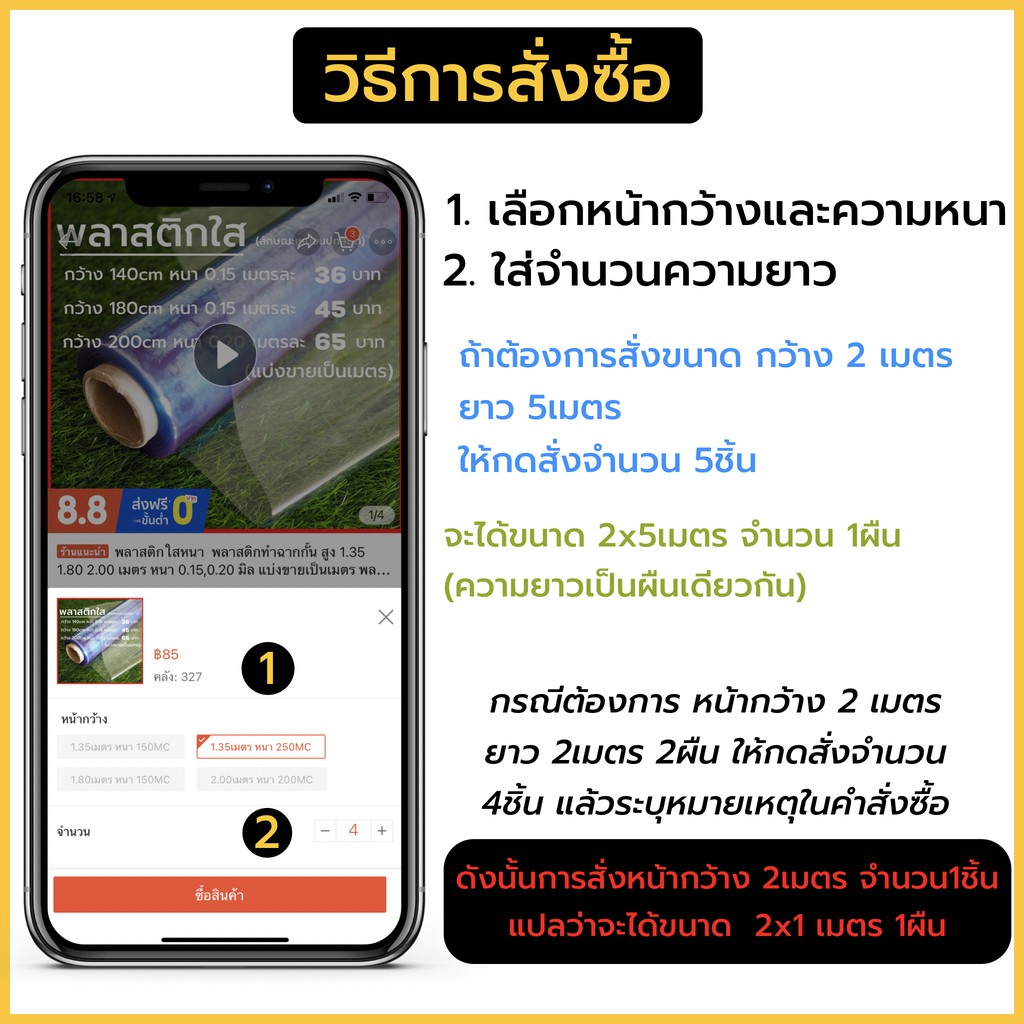 พลาสติกใสหนา พลาสติกทำฉากกั้น สูง 1.35 1.80 2.00 เมตร หนา 0.15,0.20,0.40มิล พลาสติกคลุมของ