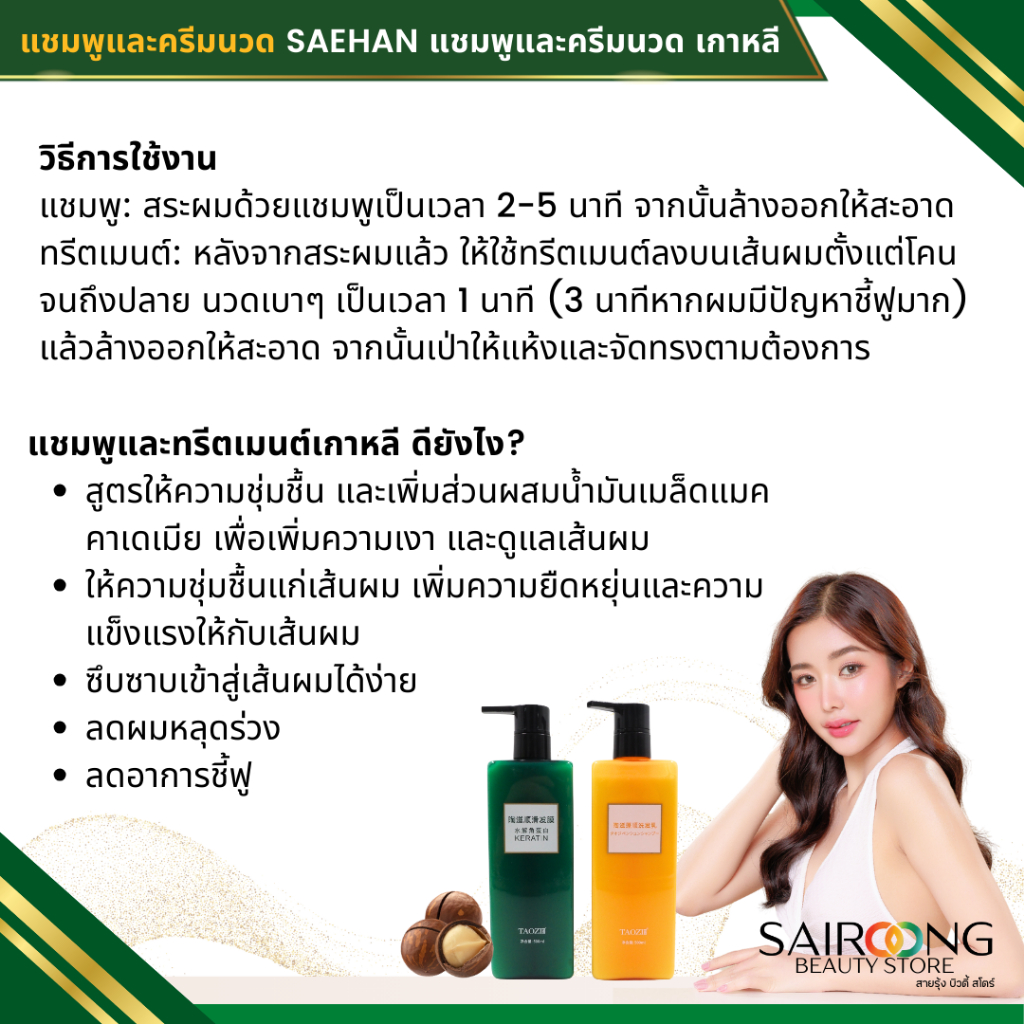 SAEHAN แชมพู/ทริปเม้นเกาหลี แชมพูเกาหลี และทรีตเมนต์เกาหลี สูตรแชมพูน้ำนม