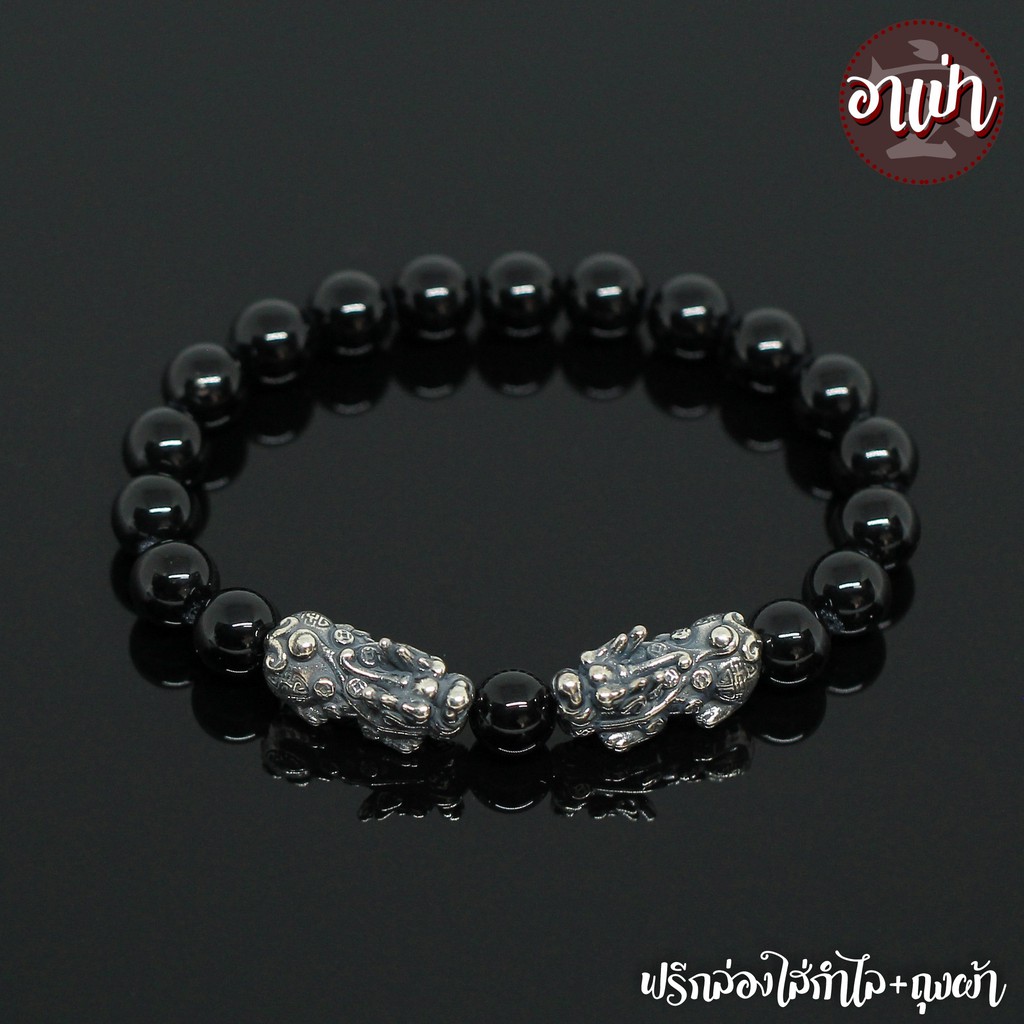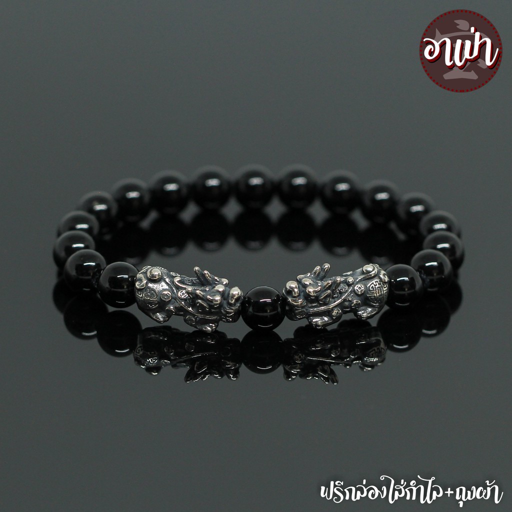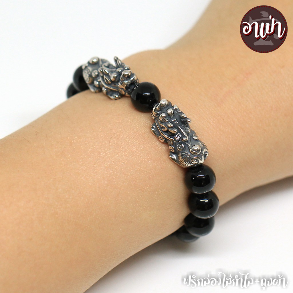 หินนิลดำ หินแบล๊คโอนิกซ์ Onyx ขนาด 8 มิล ปี่เซียะคู่ เงินแท้ 92.5% สีรมดำ หินแท้ 100% หินนิลกาฬ หินสีดำ หินมงคล