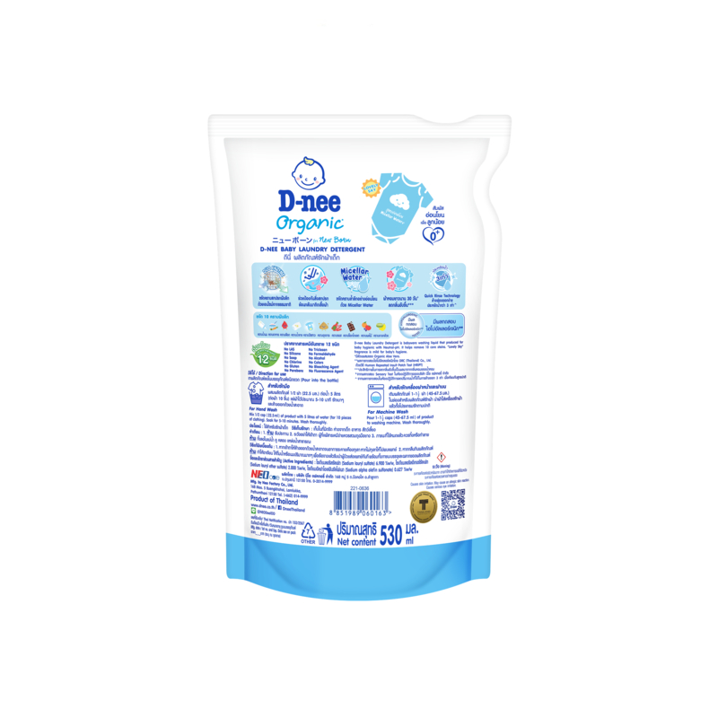 [แพ็ค3] D-nee ดีนี่ ผลิตภัณฑ์ซักผ้าเด็ก Organic New Born กลิ่น Lovely Sky ถุงเติม 530 มล.x3 , สีฟ้า
