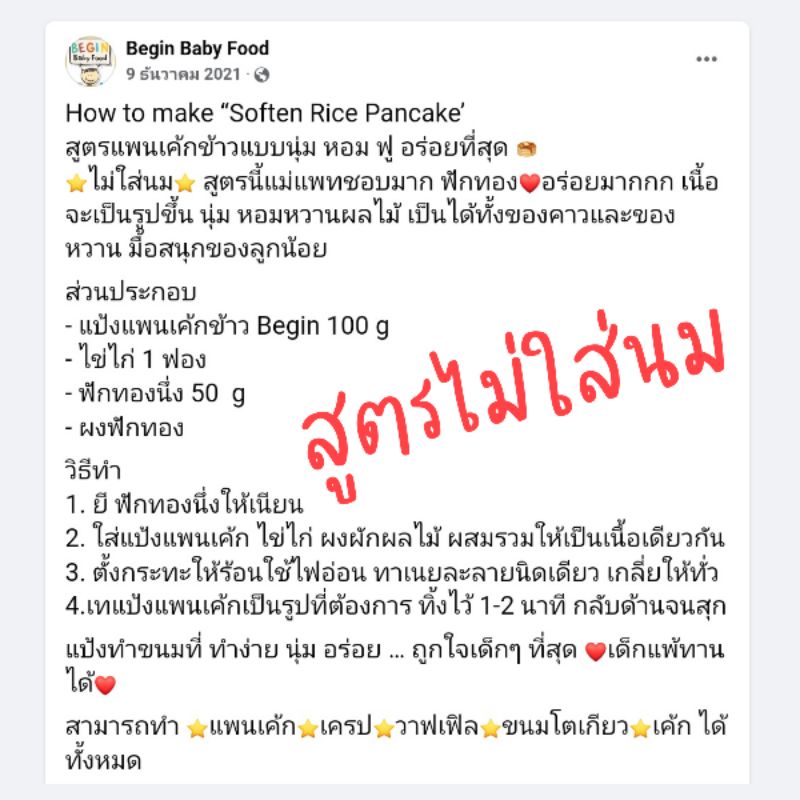 Begin แป้งแพนเค้กทำจากข้าว Gluten Free 100% นุ่ม หอม อร่อย เหมาะสำหรับเด็ก และคนแพ้แป้งสาลี