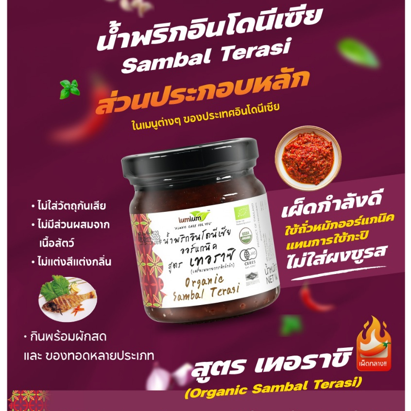 LUMLUM Organic Sambal Terasi (ทานคู่ Nasi Lemak) น้ำพริก อินโดนีเซีย แซมบัง เทอราซิ ออร์แกนิค 210g.