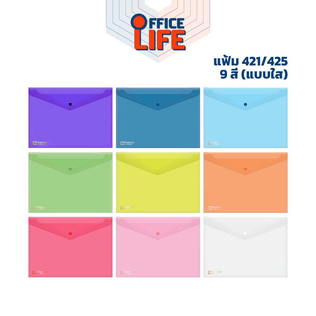 ELEPHANT (ตราช้าง) แฟ้มกระดุมพลาสติก แฟ้มซอง รุ่น 421 / 425 ขนาด A4 / F4 ( 1 เล่ม )