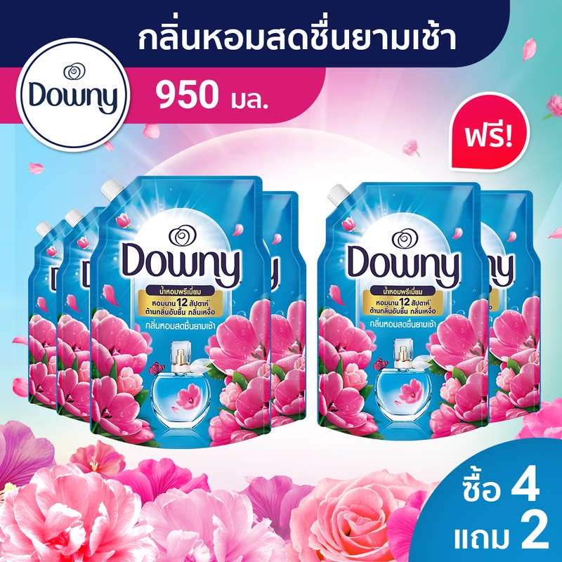 [ซื้อ 4 แถม 2] Downy ดาวน์นี่ น้ำยาปรับผ้านุ่ม สูตรเข้มข้น ชนิดถุงเติม Concentrated Fabric Softener Refill 950ml x6