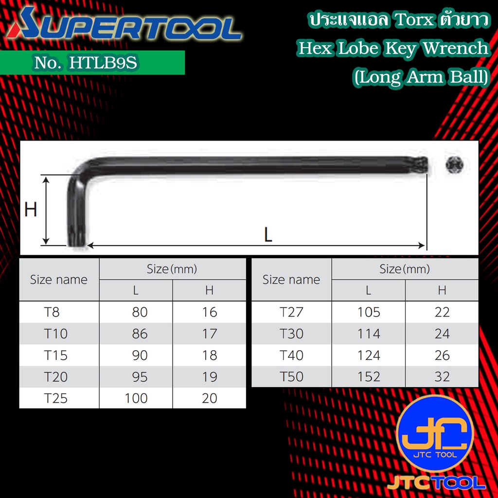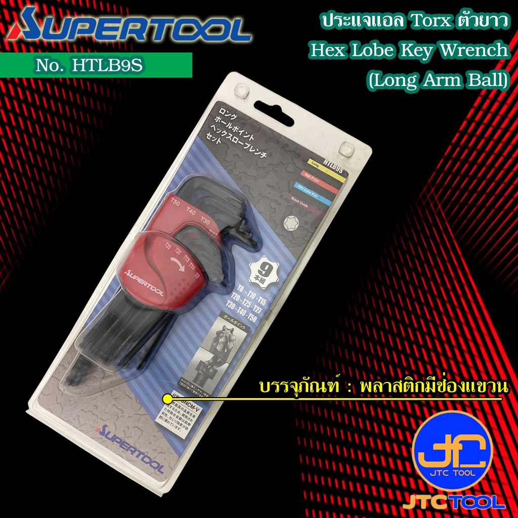 Supertool ชุดประแจแอลหัวบอล 6 แฉกตัวยาว(Torx) 9ชิ้น ขนาด T8-T50 รุ่น HTLB9S - Long Arm Ball Point Hex Key No.HTLB9S