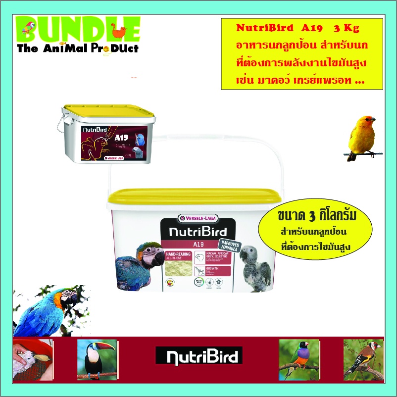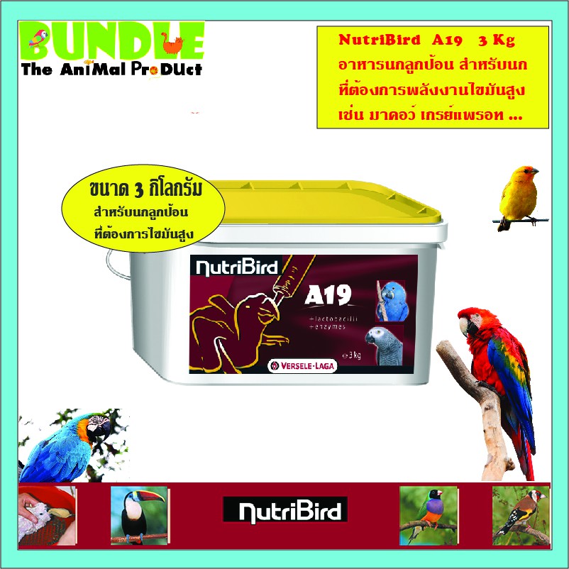 NutriBird A19 3 Kg. อาหารนกลูกป้อน อาหารลูกป้อน สำหรับลูกนกที่ต้องการพลังงานไขมันสูง ขนาด 3 กิโลกรัม