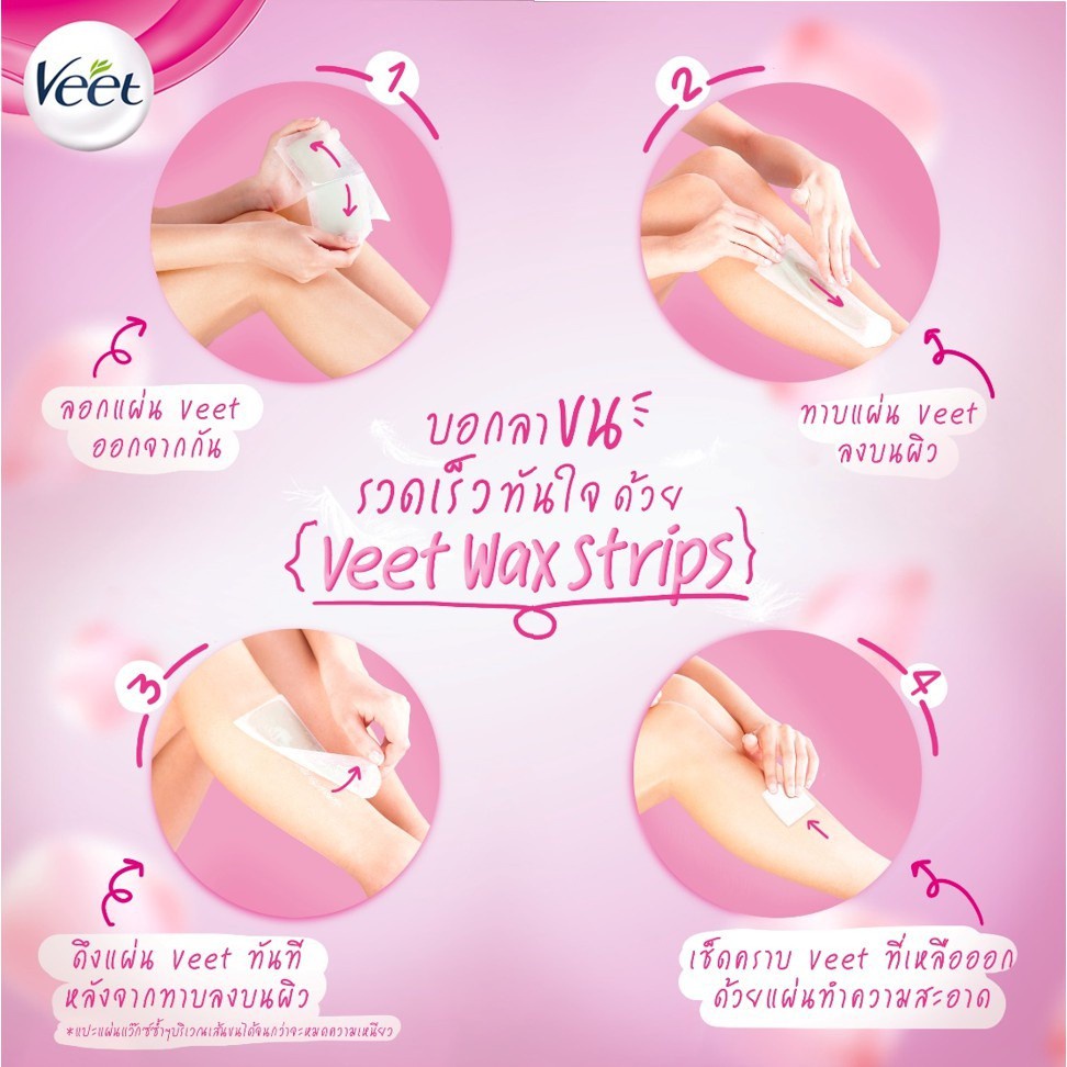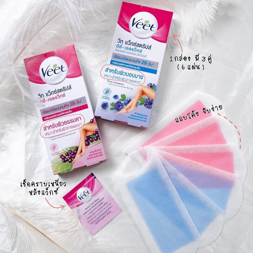 (แผ่น) Veet Wax Strips วีท แว็กซ์สตริปส์ แผ่นแว็กซ์ขจัดขน บรรจุ 6 แผ่น