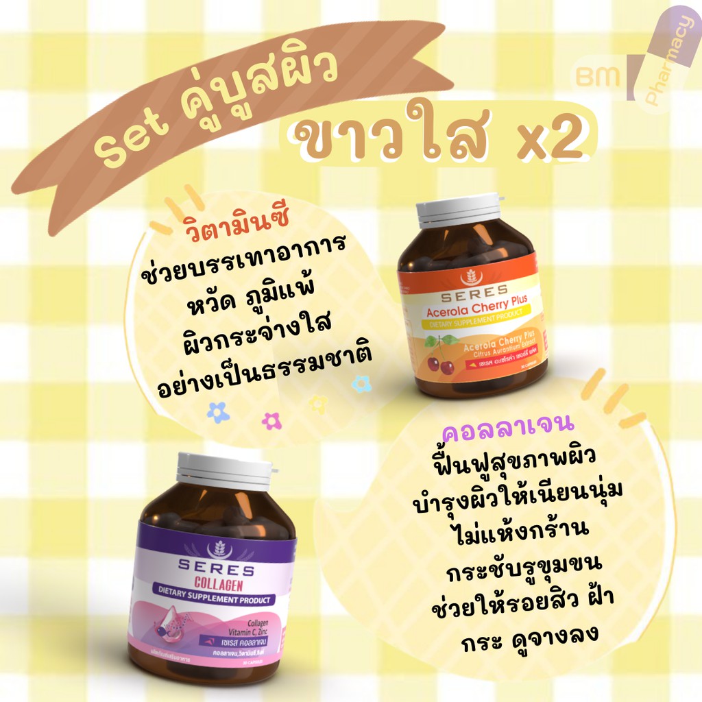Set 2 ชิ้น คู่บูสผิวขาวใส x 2 วิตามินซี Acerola Cherry Plus 1 กระปุก + Collagen คอลลาเจน 1 กระปุก ผิวสวยใสสุขภาพดี