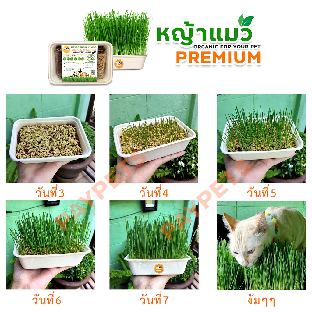 ชุดปลูกหญ้าแมว จัมโบ้ครบชุดX3 ปลูกง่าย โตไว Wheatgrass ชุดพร้อมปลูก Cat grass แมวชอบ ขับก้อนขน