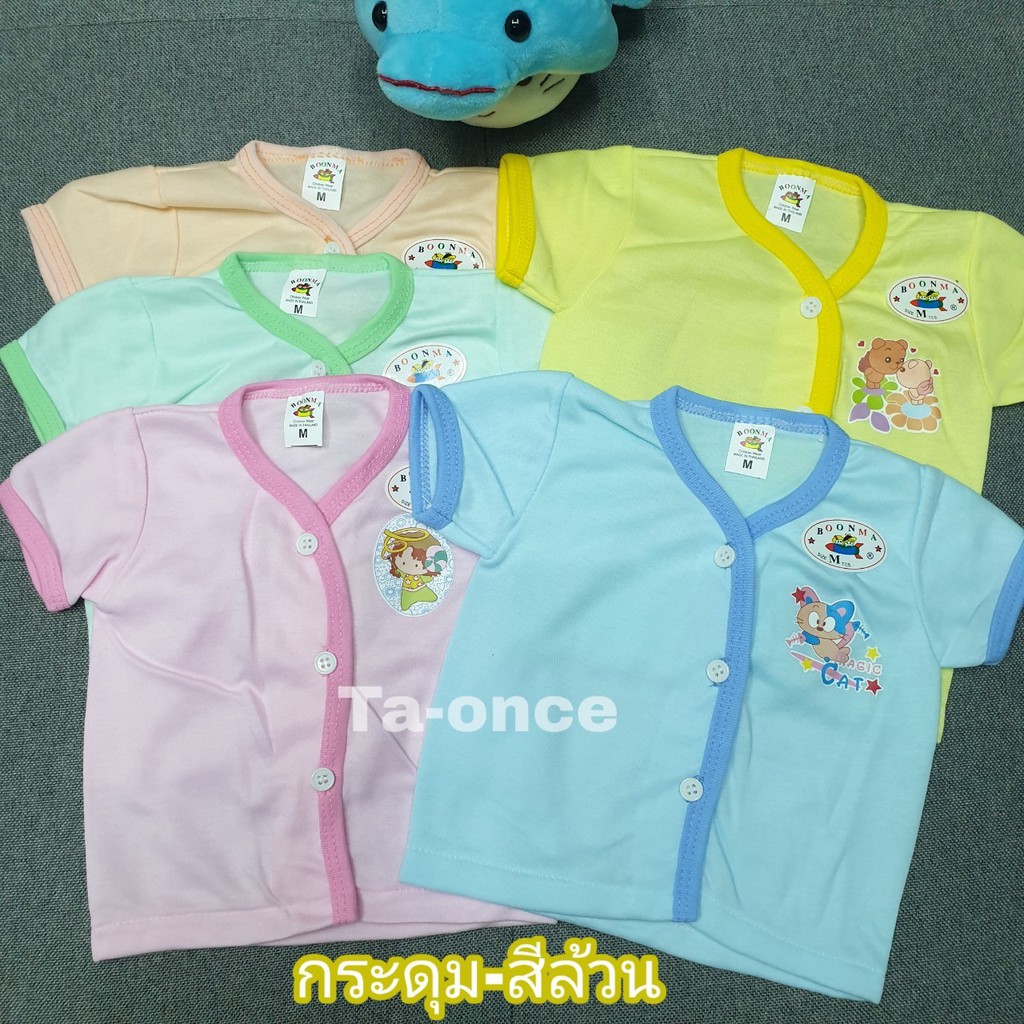 (เซ็ต 6 ตัว) เสื้อเด็กอ่อนกระดุมหน้า ตราบุญมา 3 แบบ พิมพ์ลายการ์ตูนน่ารัก เสื้อเด็กแรกเกิด (KD158)