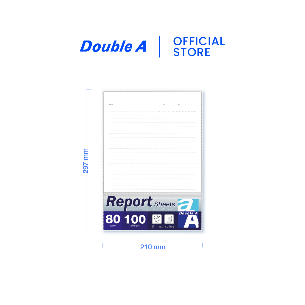 Double A Report Sheet กระดาษรายงาน ขนาด A4 หนา 80 แกรม 100 แผ่น จำหน่าย 1 แพ็ก