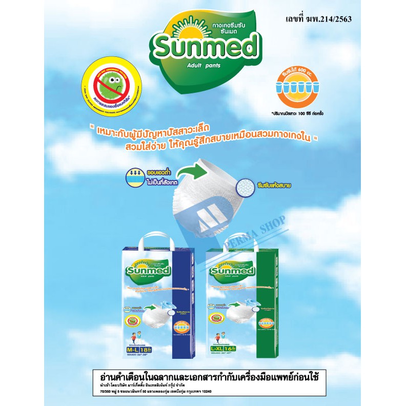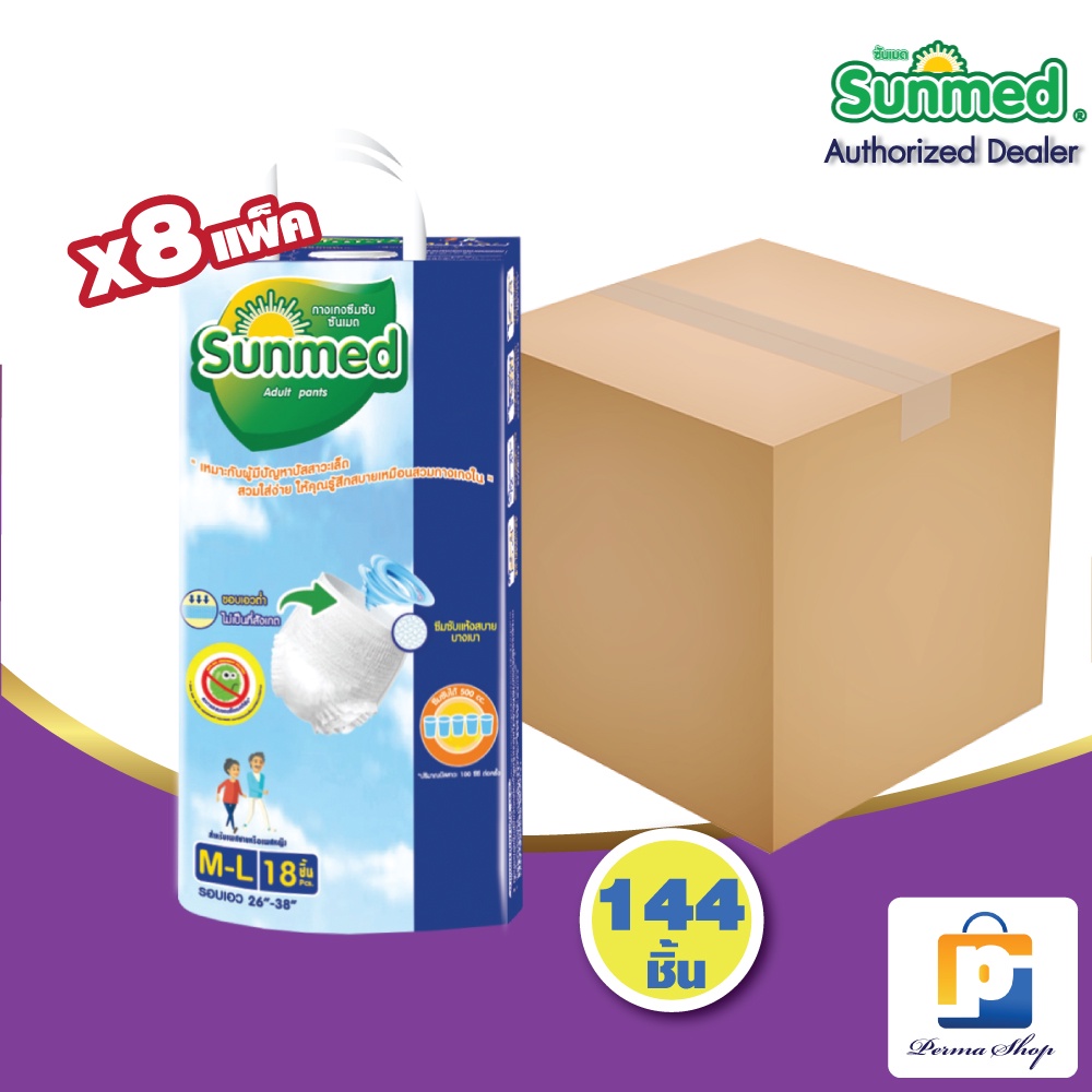 [แถมห่อละ 2 ชิ้น] Sunmed ผ้าอ้อมผู้ใหญ่แบบกางเกง กางเกงซึมซับ ซันเมด รุ่นหนานุ่ม ห่อจัมโบ้ Size M-L (จำนวน 1 ลัง 8 ห่อ)