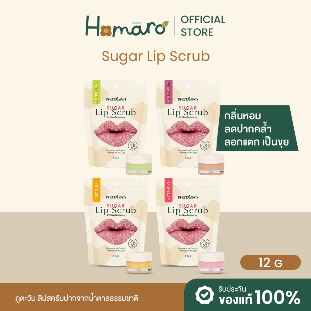 NEW น้ำตาลสครับขัดริมฝีปาก ผลัดเซลผิวให้ปากเนียนนุ่ม Sugar Lip Scrub Phutawan น้ำตาล สครับปาก