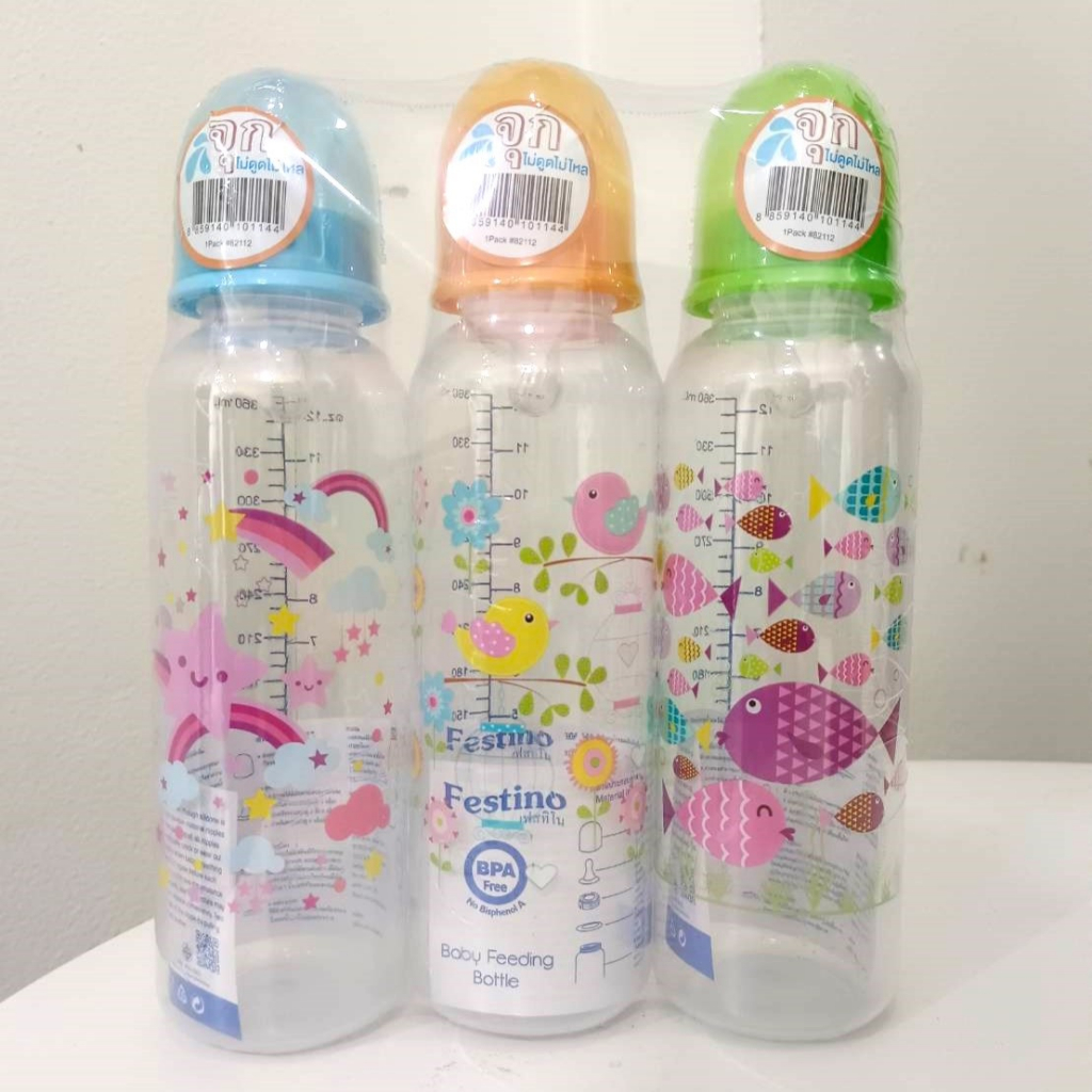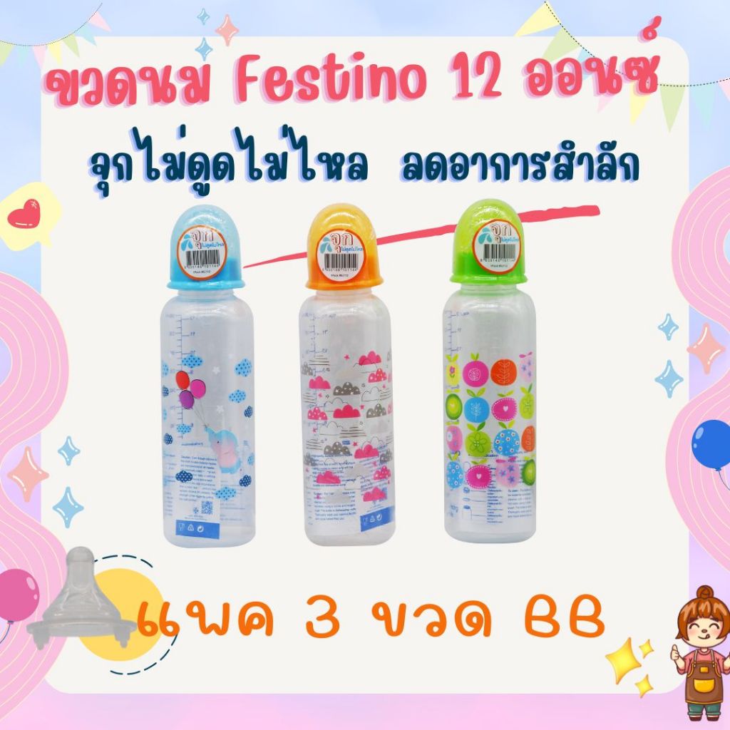 Festino ขวดนม จัมโบ้ 12ออนซ์ ทรงกลมคอแคบ และ12ออนซ์ ปากกว้างจุกนมไม่ดูดไม่ไหล ขนาดใหญ่