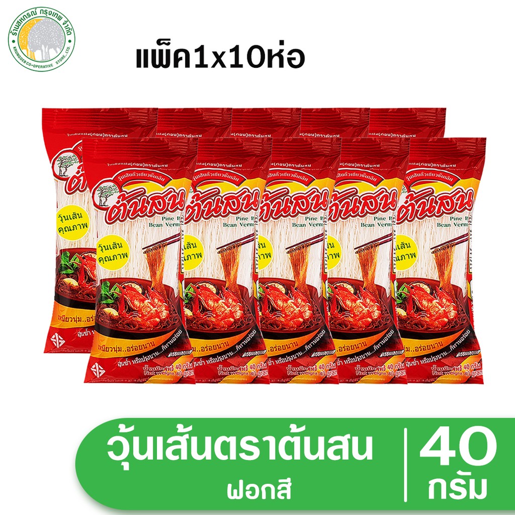 วุ้นเส้นต้นสน ฟอกสี,ไม่ฟอกสี 40 กรัม แพ็ค 10 ห่อวุ้นเส้นคุณภาพ