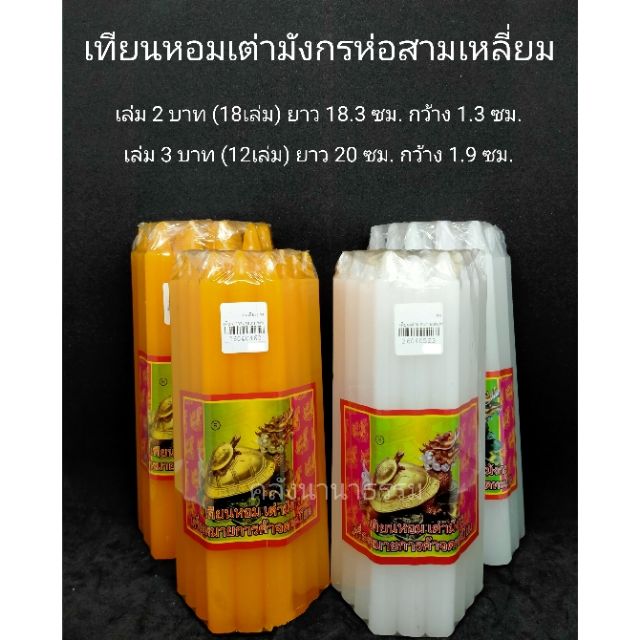 ✨ เทียนหอมเต่ามังกร (เล่ม 2/3 บาท) ห่อสามเหลี่ยม เทียนอย่างดี เทียนไหว้พระ | คลังนานาธรรม สังฆภัณฑ์