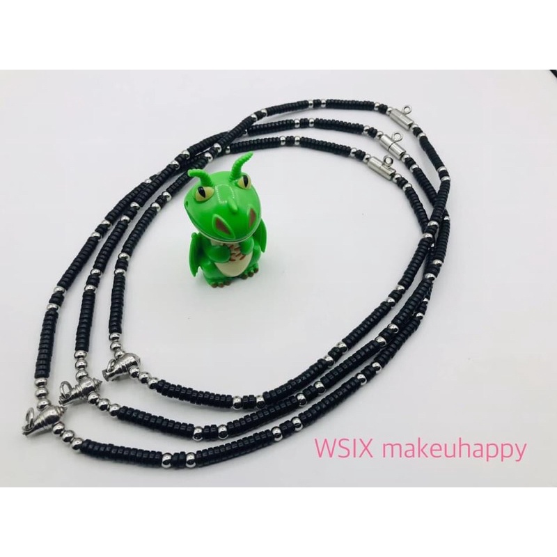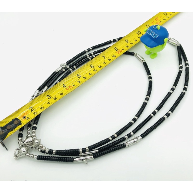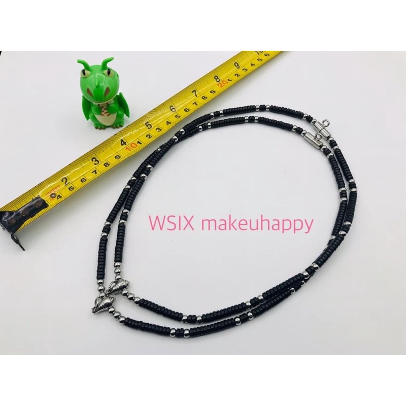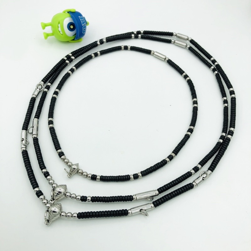 สร้อยกะลาสีดำคั่นเม็ดสแตนเลสแท้แต่งหัวขุนกลึง ใส่พระ3องค์กดสั่ง 3องค์
