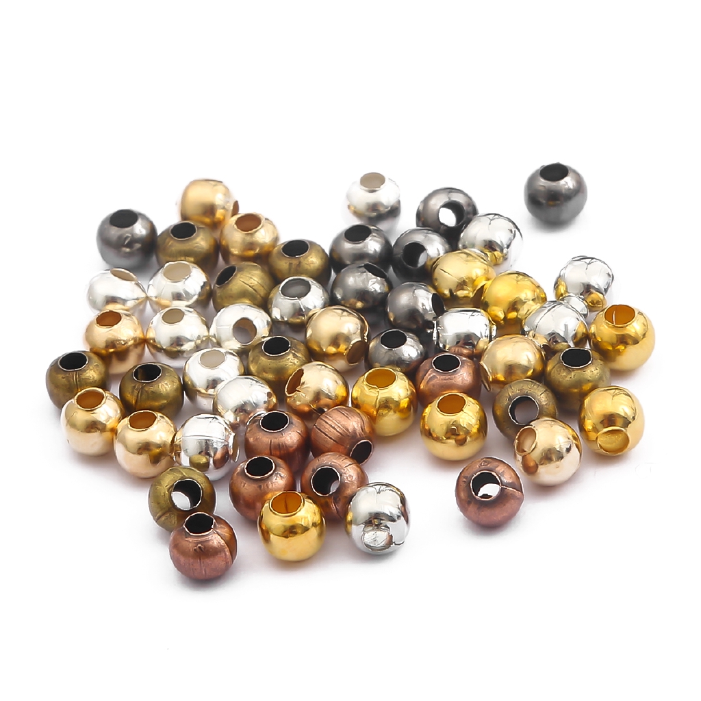 ลูกปัดโลหะ ทรงกลม สําหรับทําเครื่องประดับ ขนาด 2.4 - 6.0 มม.