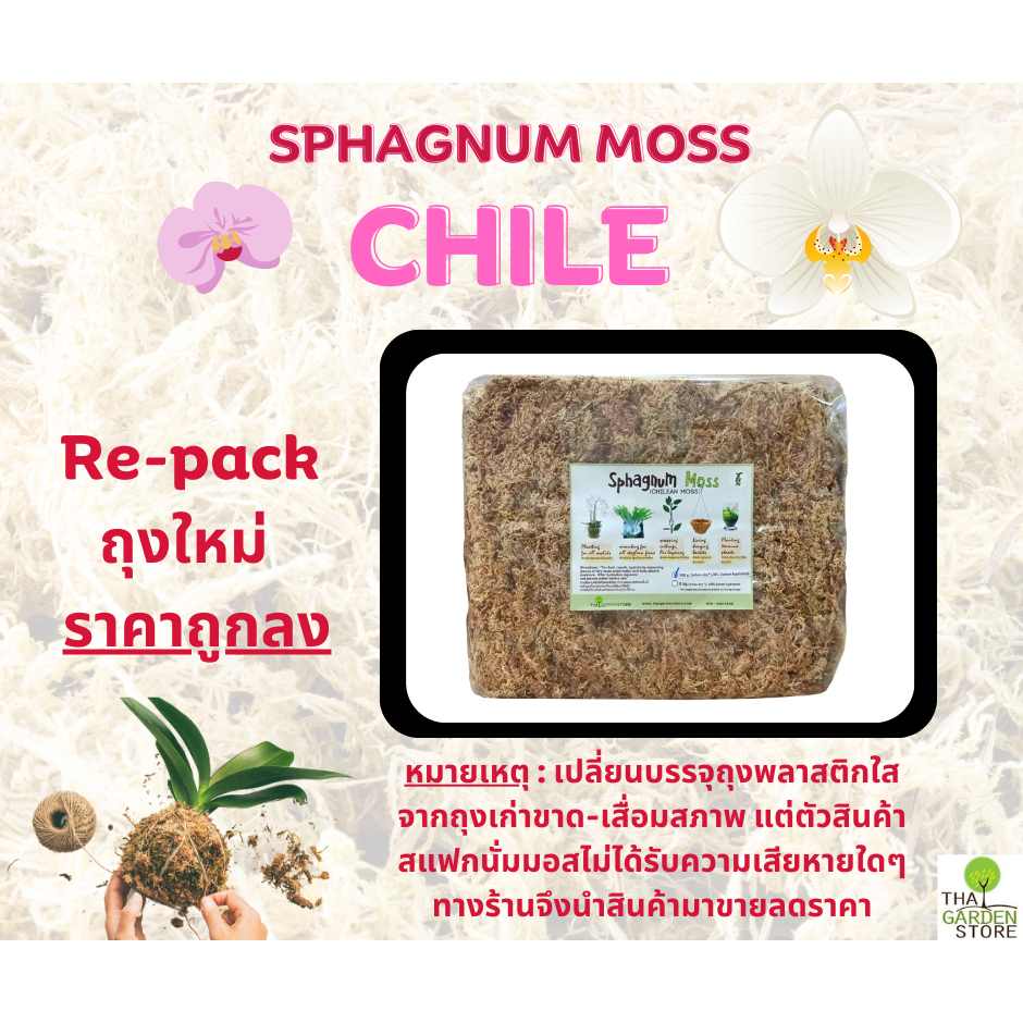 สแฟกนั่มมอส มอสชิลี ปลูกต้นไม้ 500 g. (Chilean Sphagnum Moss)